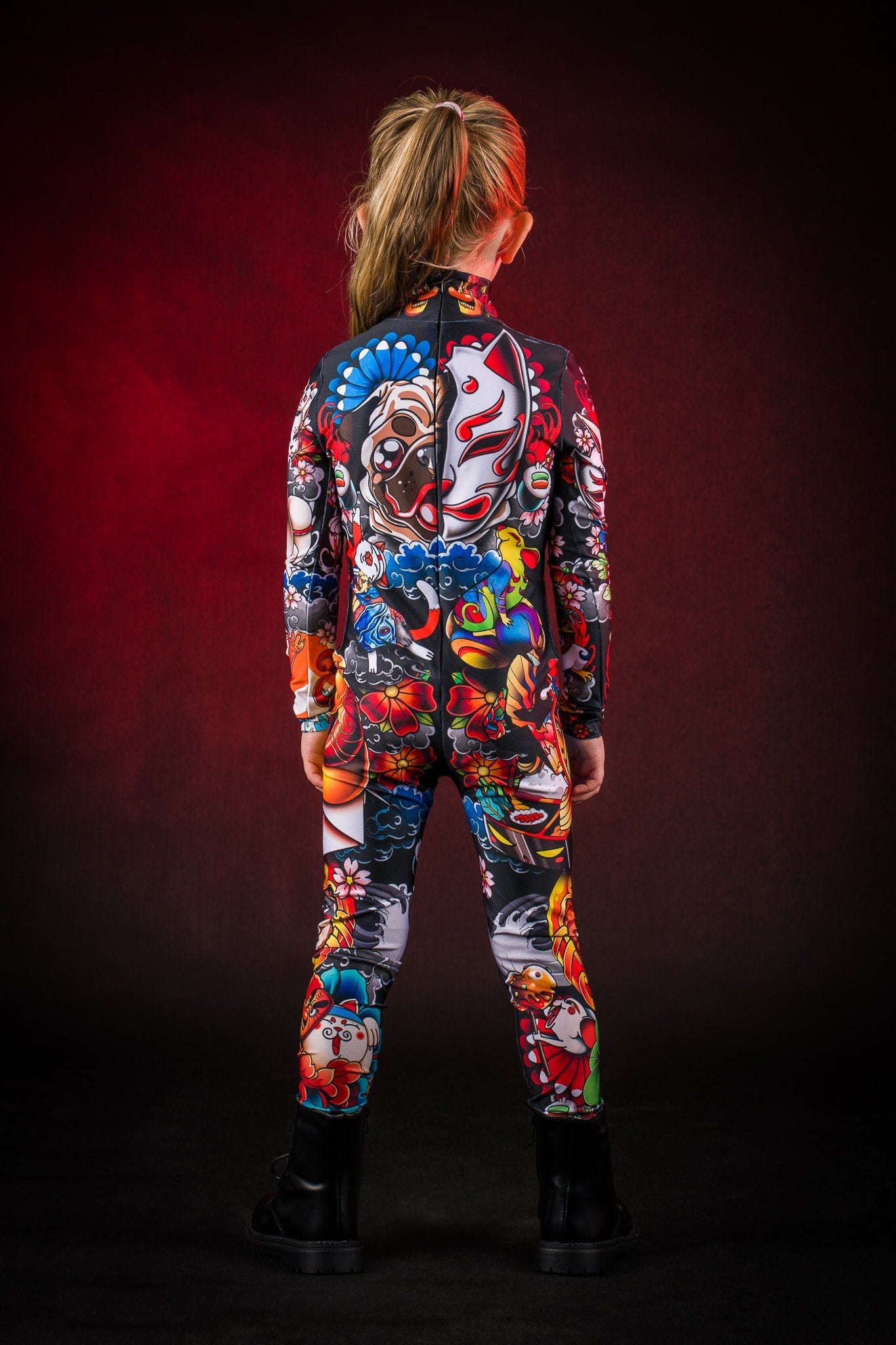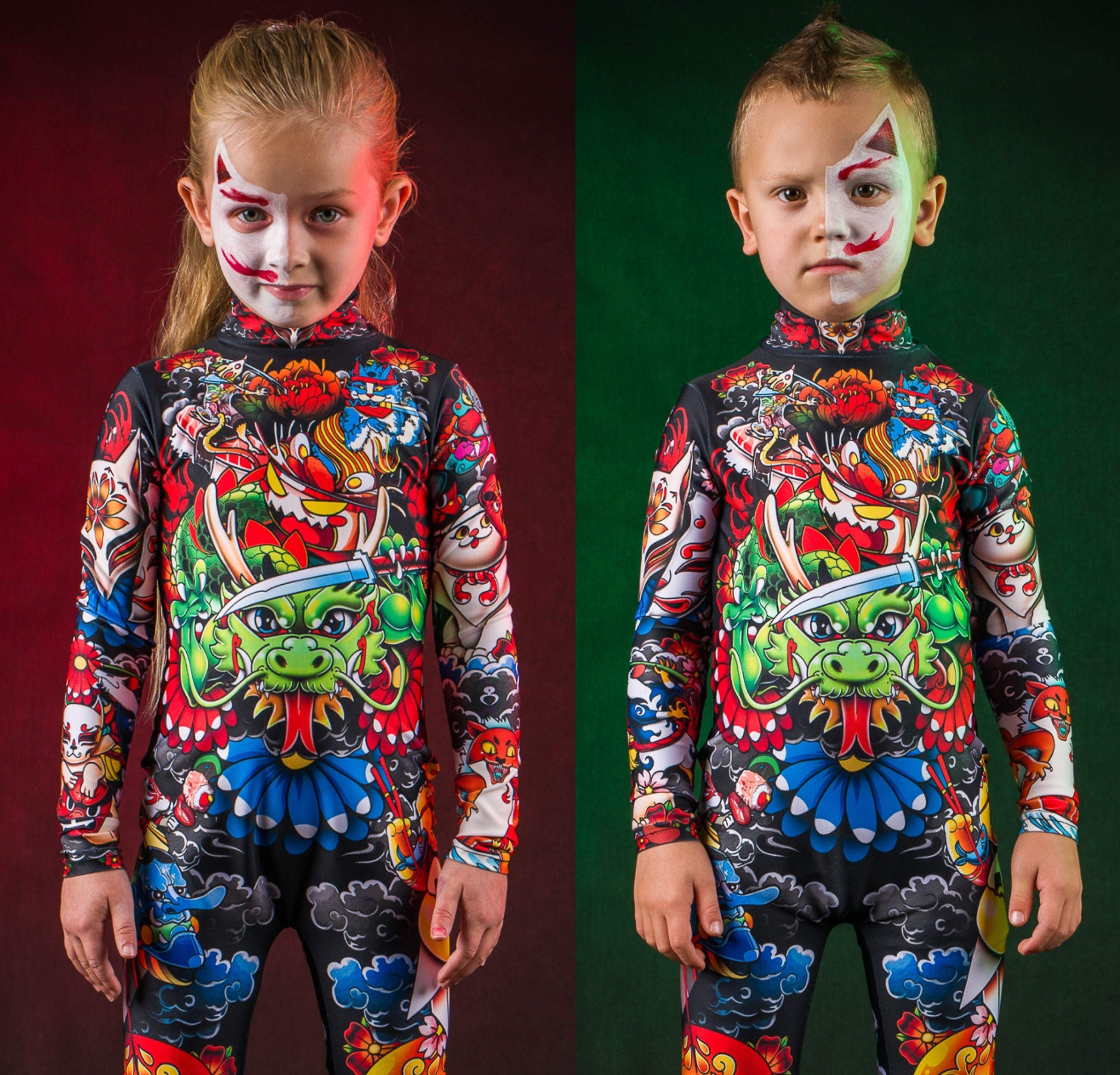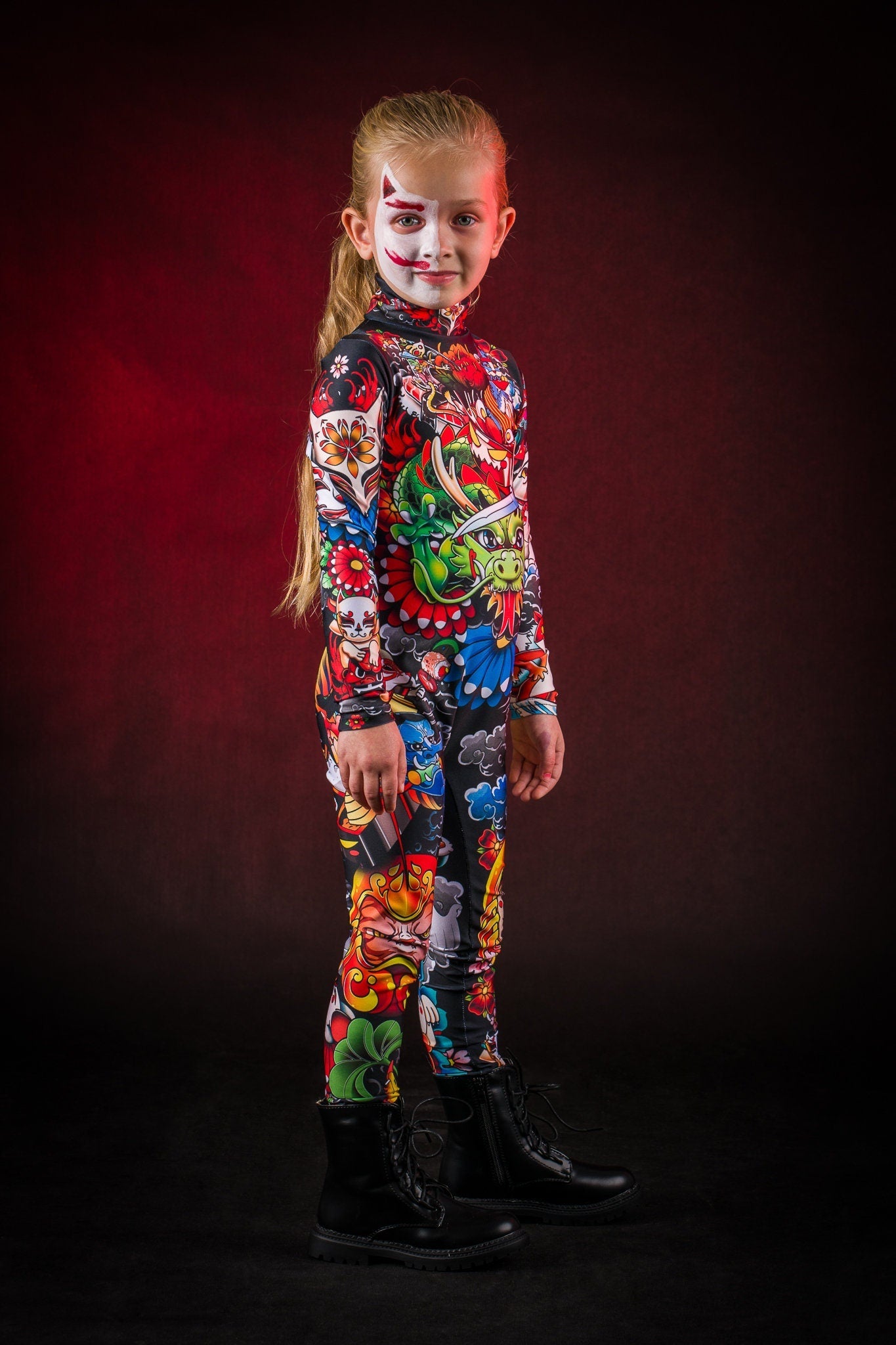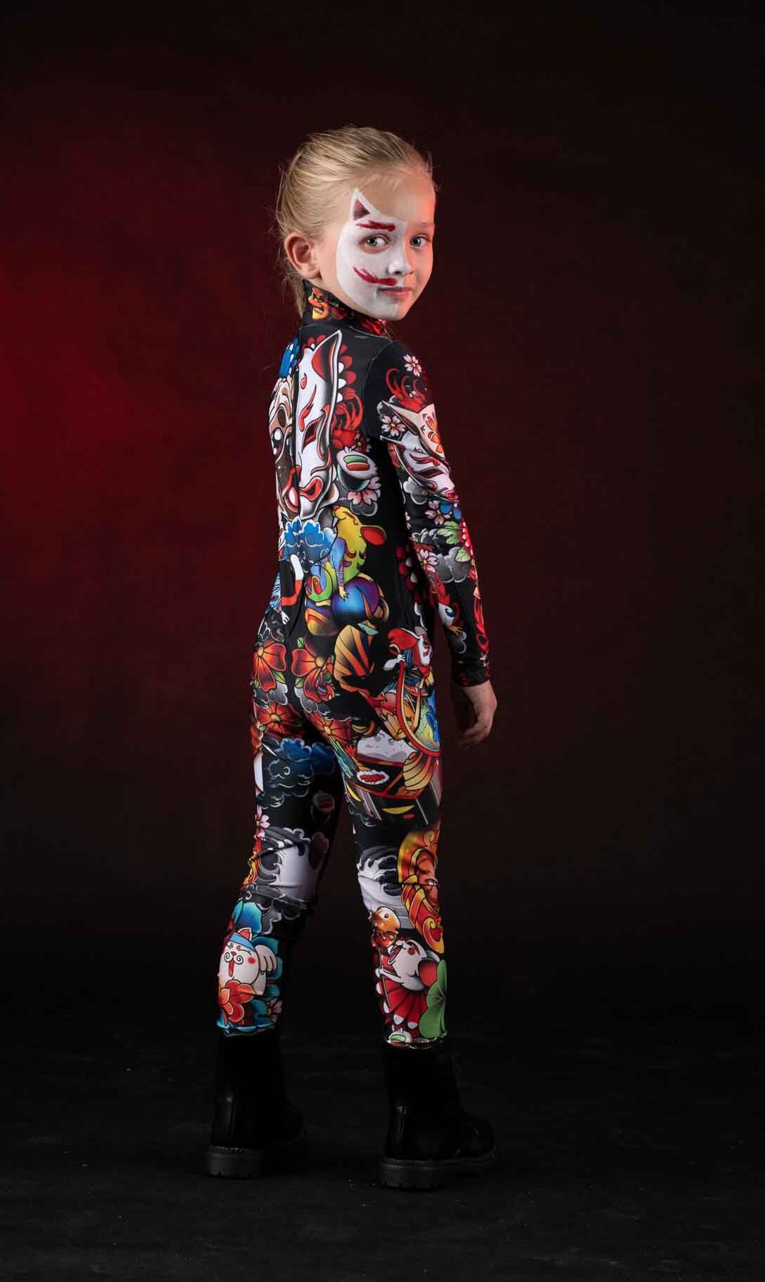 Przenieś swoją pociechę do świata pełnego tajemnic i niezwykłych motywów! Wybierz kombinezon z wyrazistym nadrukiem, pełnym zwierzęcych symboli, smoka i hipnotyzujących wzorów – idealny na bale przebierańców, Halloween i inne wyjątkowe okazje. 🐉✨