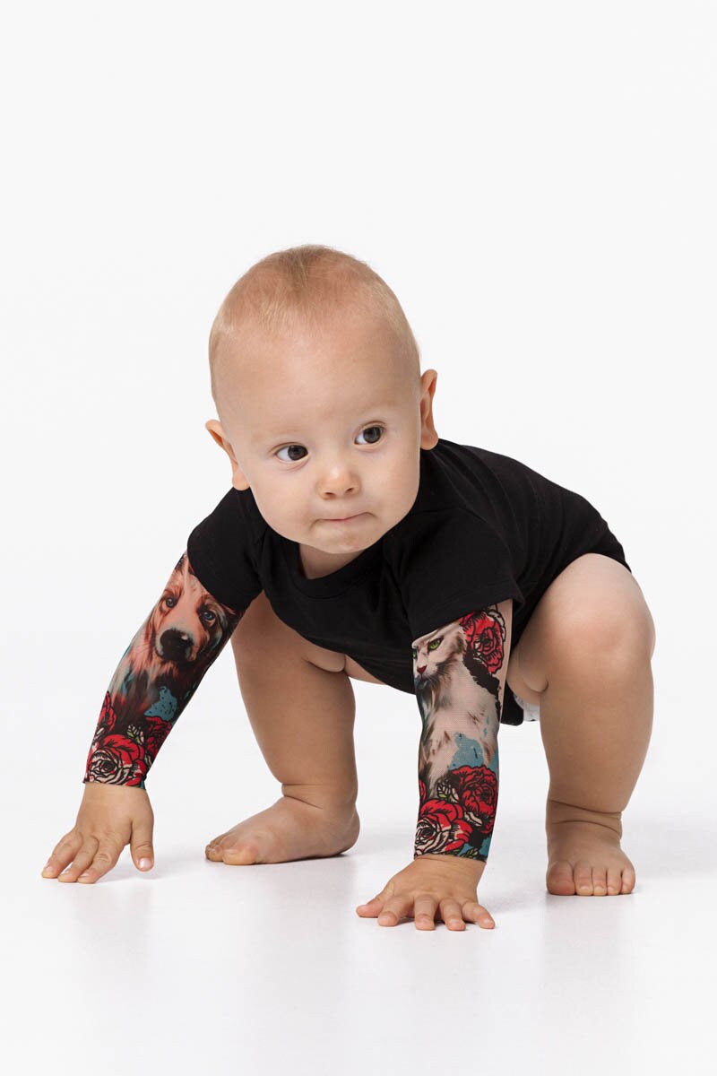 Szukasz wyjątkowego ubranka, które doda Twojemu maluchowi oryginalnego stylu? To body łączy wygodę z efektownym designem, tworząc iluzję tatuaży na rękawkach! 😍