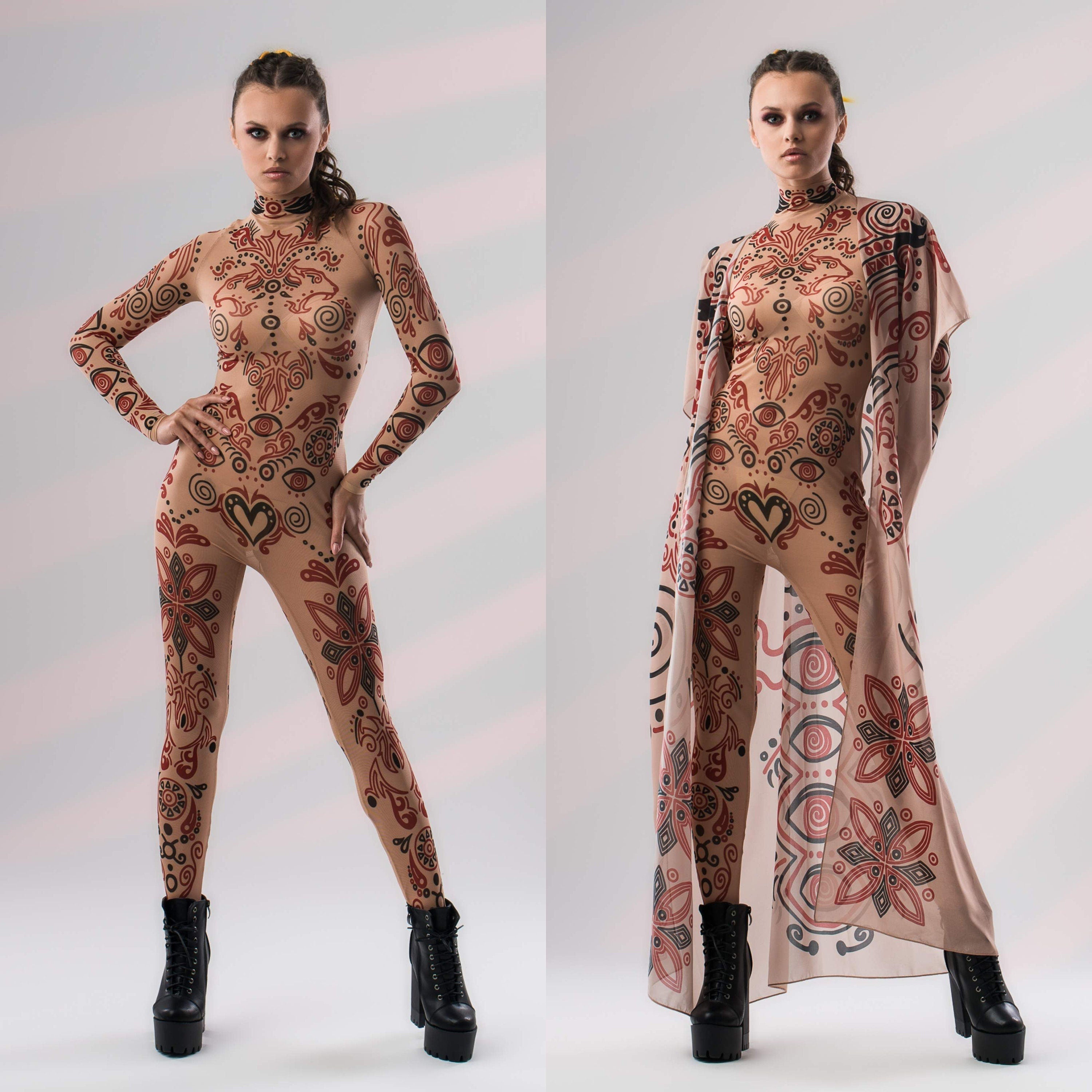 Chcesz się wyróżnić? Nasz kombinezon z efektem tatuażu doda Ci drapieżności i oryginalności! Możesz nosić go pod inne ubrania lub samodzielnie – jako odważny, przyciągający uwagę strój.