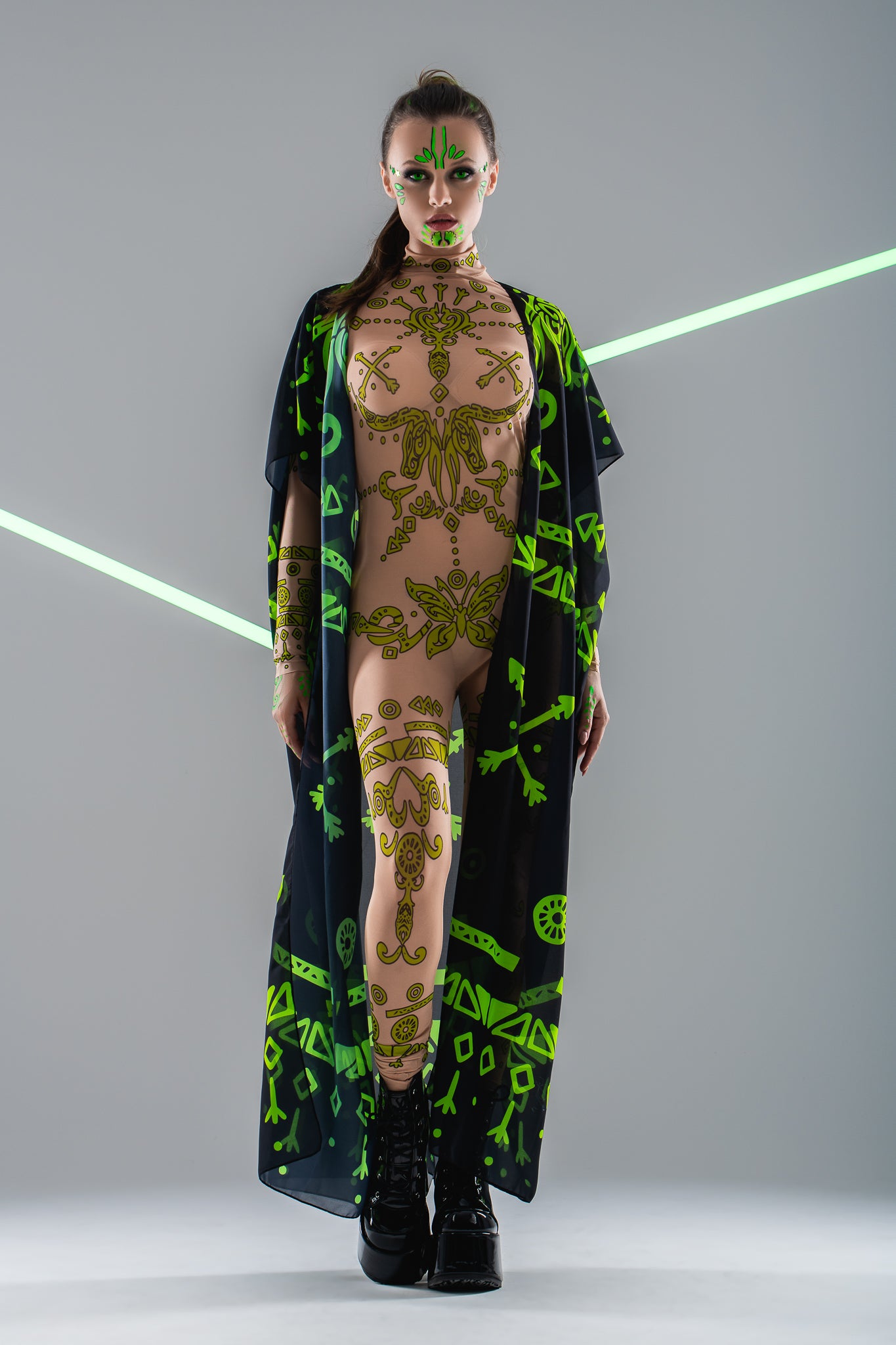 Kombinezon z tatuażem GREEN TRIBAL - nadruk UV