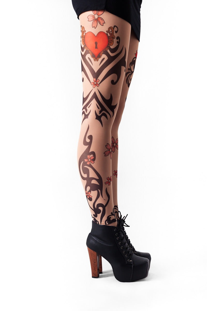 Legginsy z tatuażem HEART & KEYS