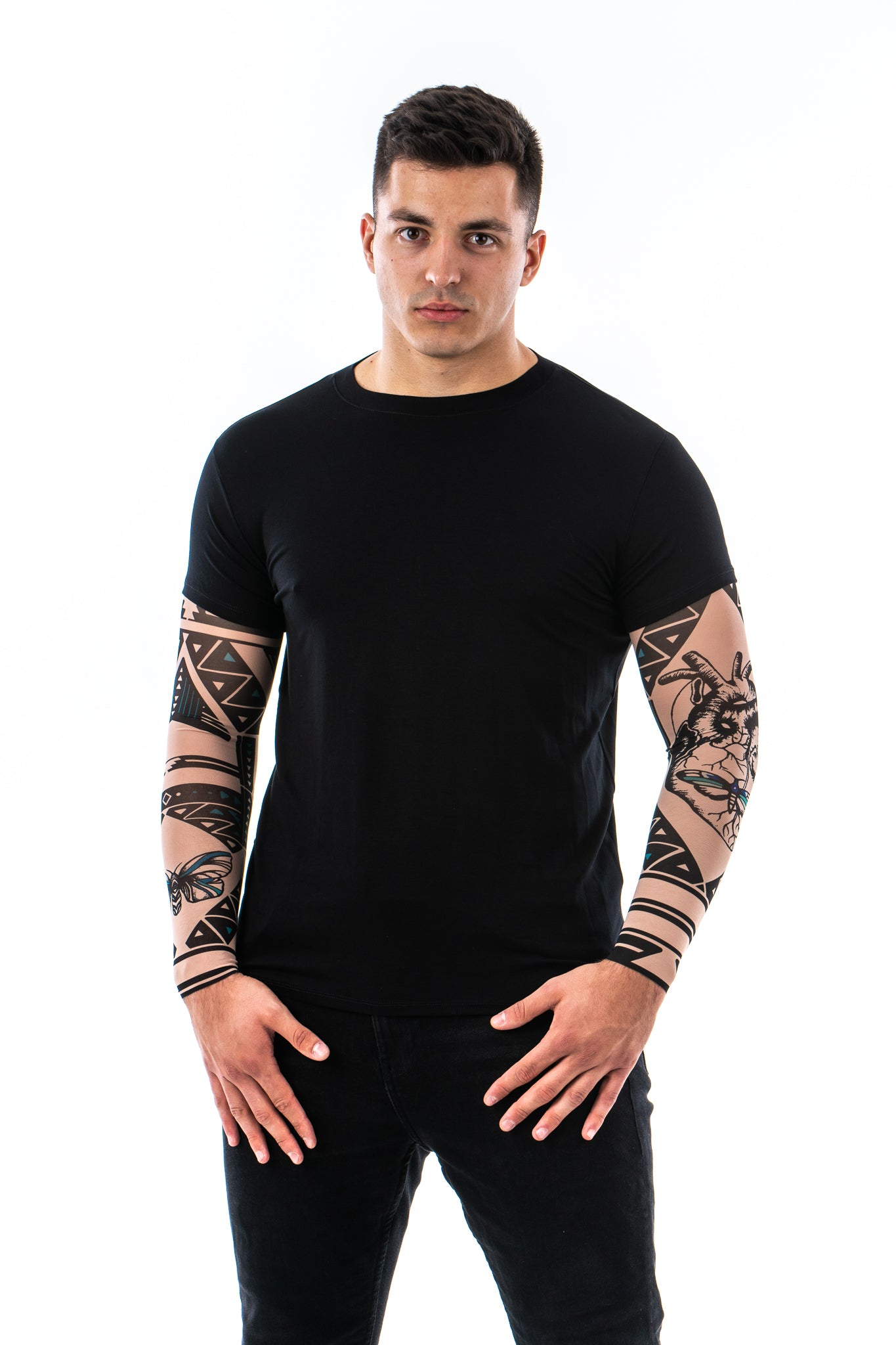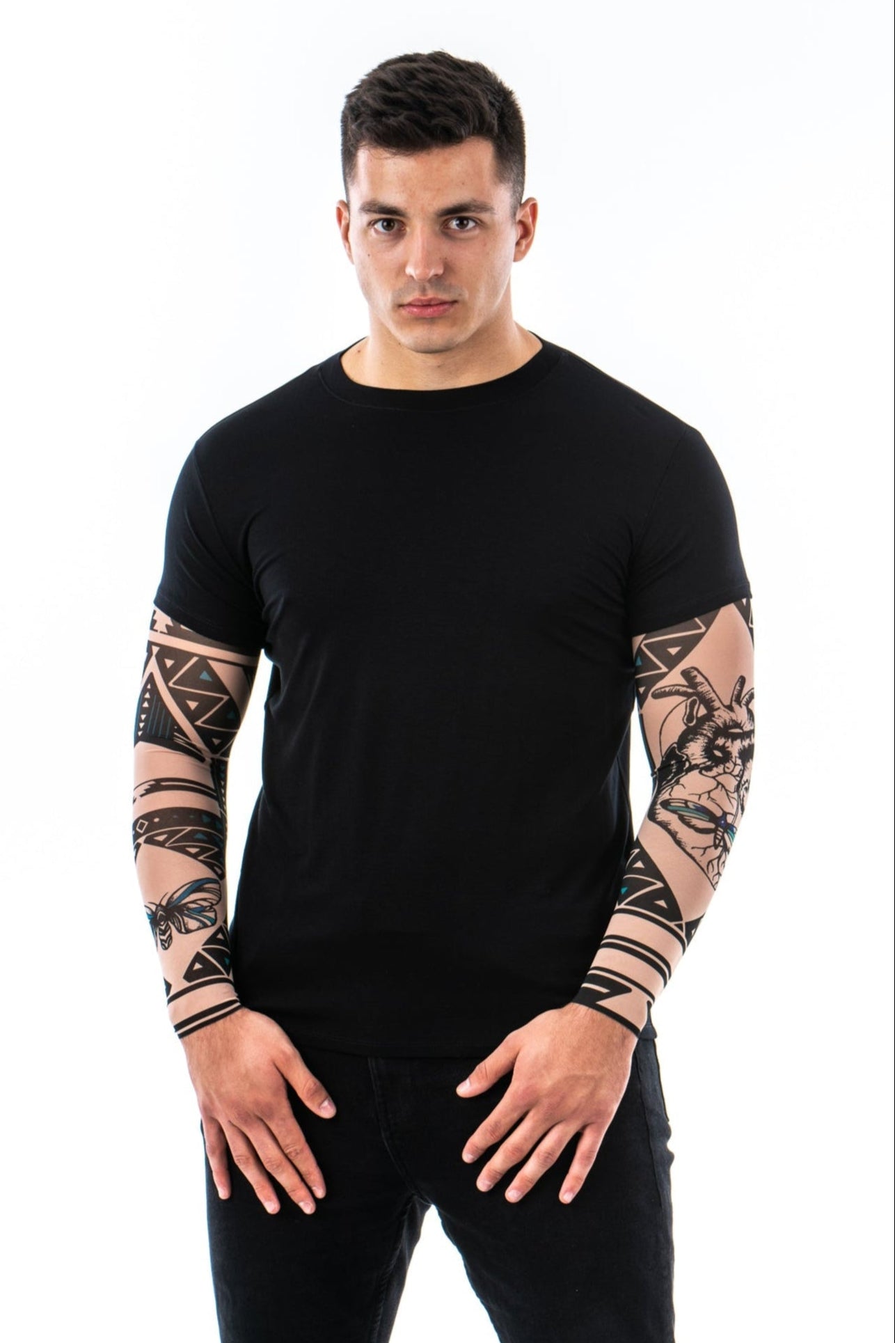 ✔️ Ponadczasowa czerń – uniwersalny kolor, który pasuje do wszystkiego i świetnie eksponuje wzory tatuaży. 🖤