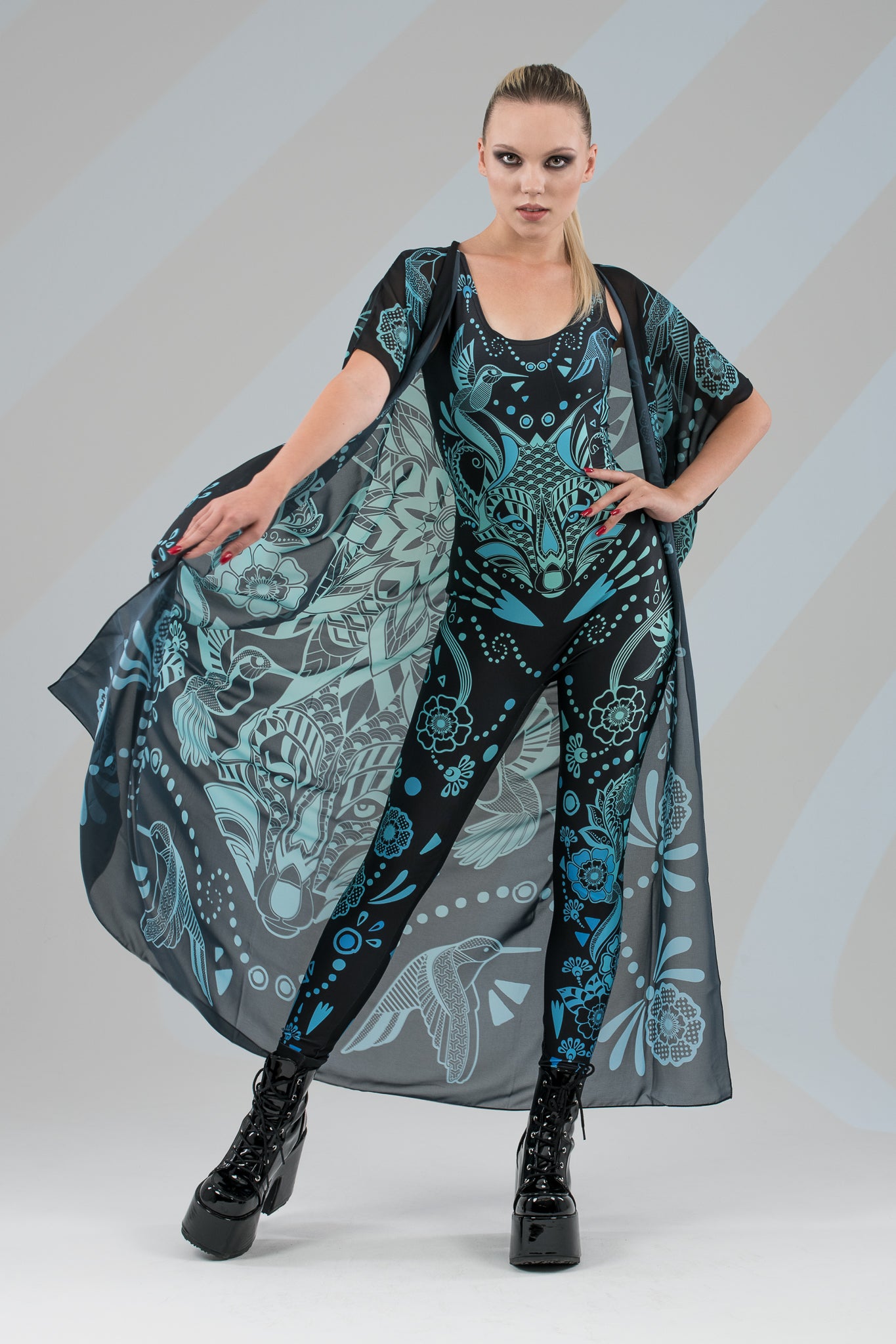 Kombinezon z dekoltem WOLF & HUMMINGBIRDS niebieski