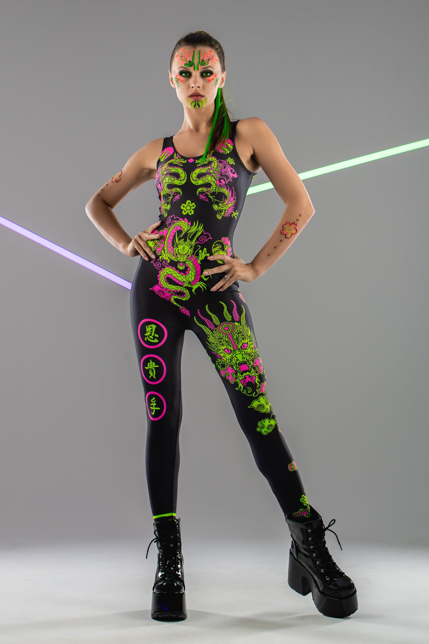 Kombinezon z dekoltem CHINESE DRAGONS - nadruk UV