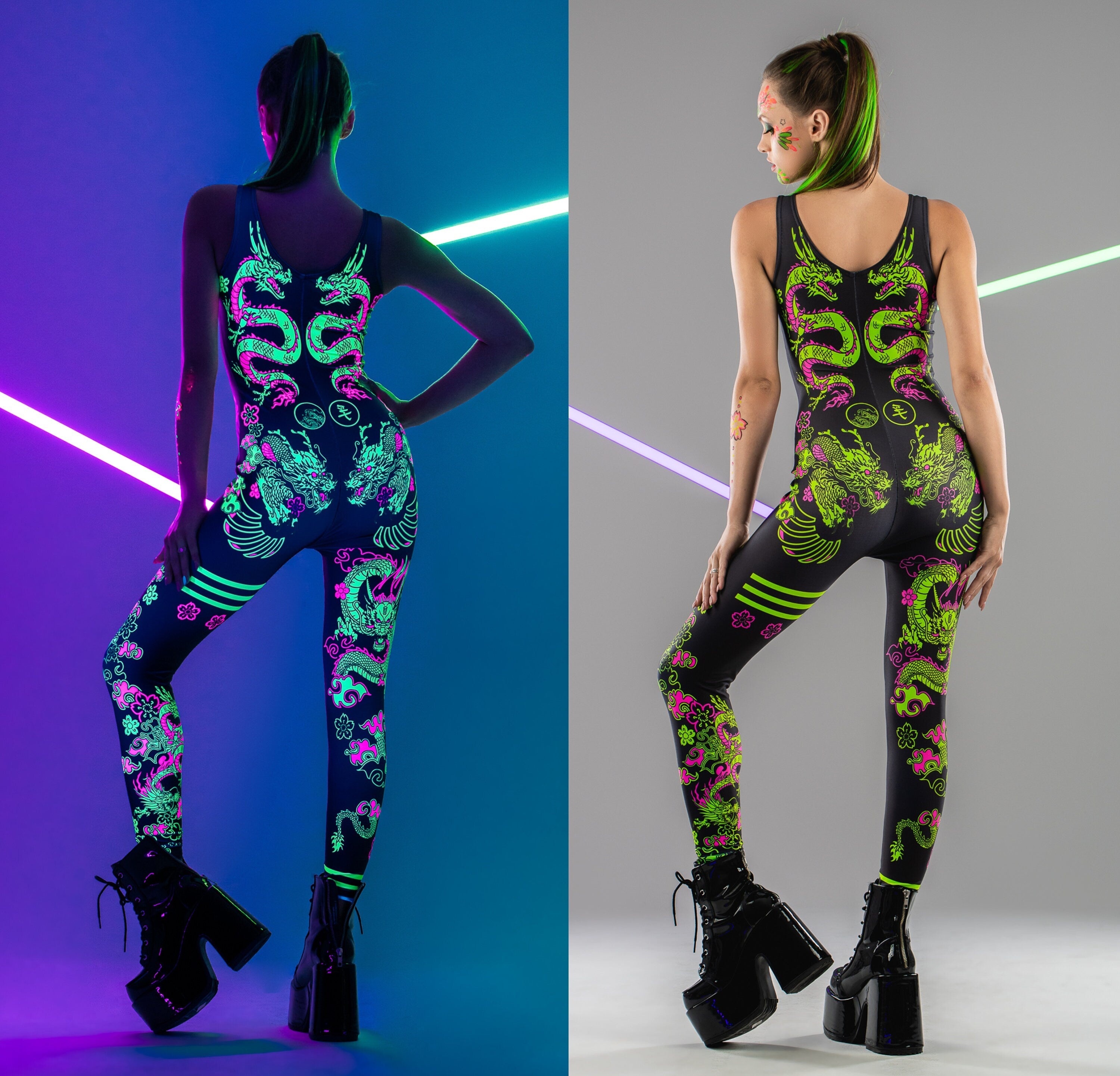 Szukasz oryginalnego i wygodnego stroju na festiwale, imprezy lub inne wyjątkowe okazje? Nasz kombinezon z fluorescencyjnym nadrukiem i głębokim dekoltem to doskonały wybór, który nie tylko wyróżni Cię z tłumu, ale także zapewni komfort przez cały dzień! 🎉✨
