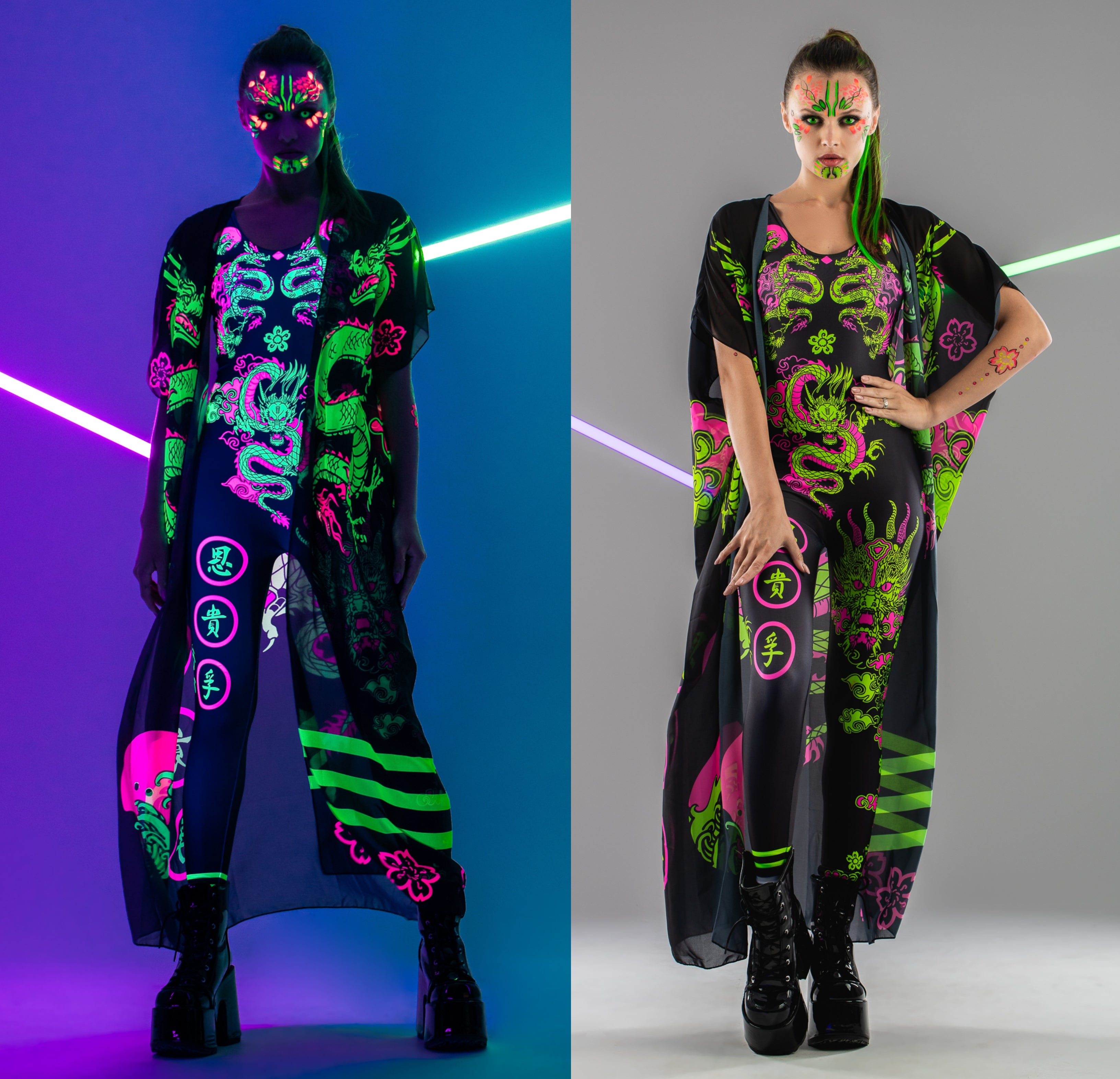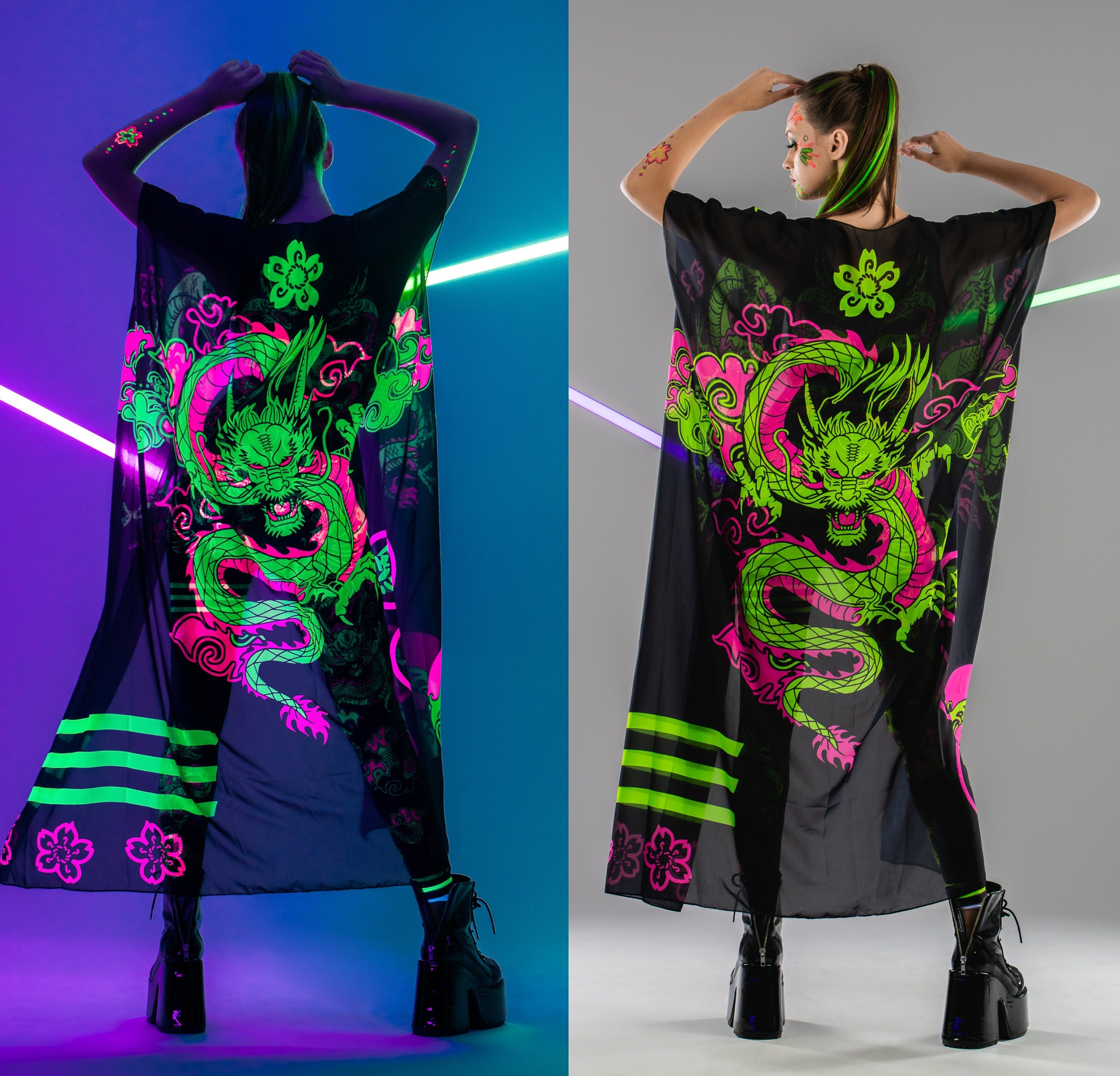 ✔️ Fluorescencyjny nadruk – ożywa pod światłem UV, tworząc spektakularny neonowy efekt, idealny na rave, festiwale i imprezy! 🎇