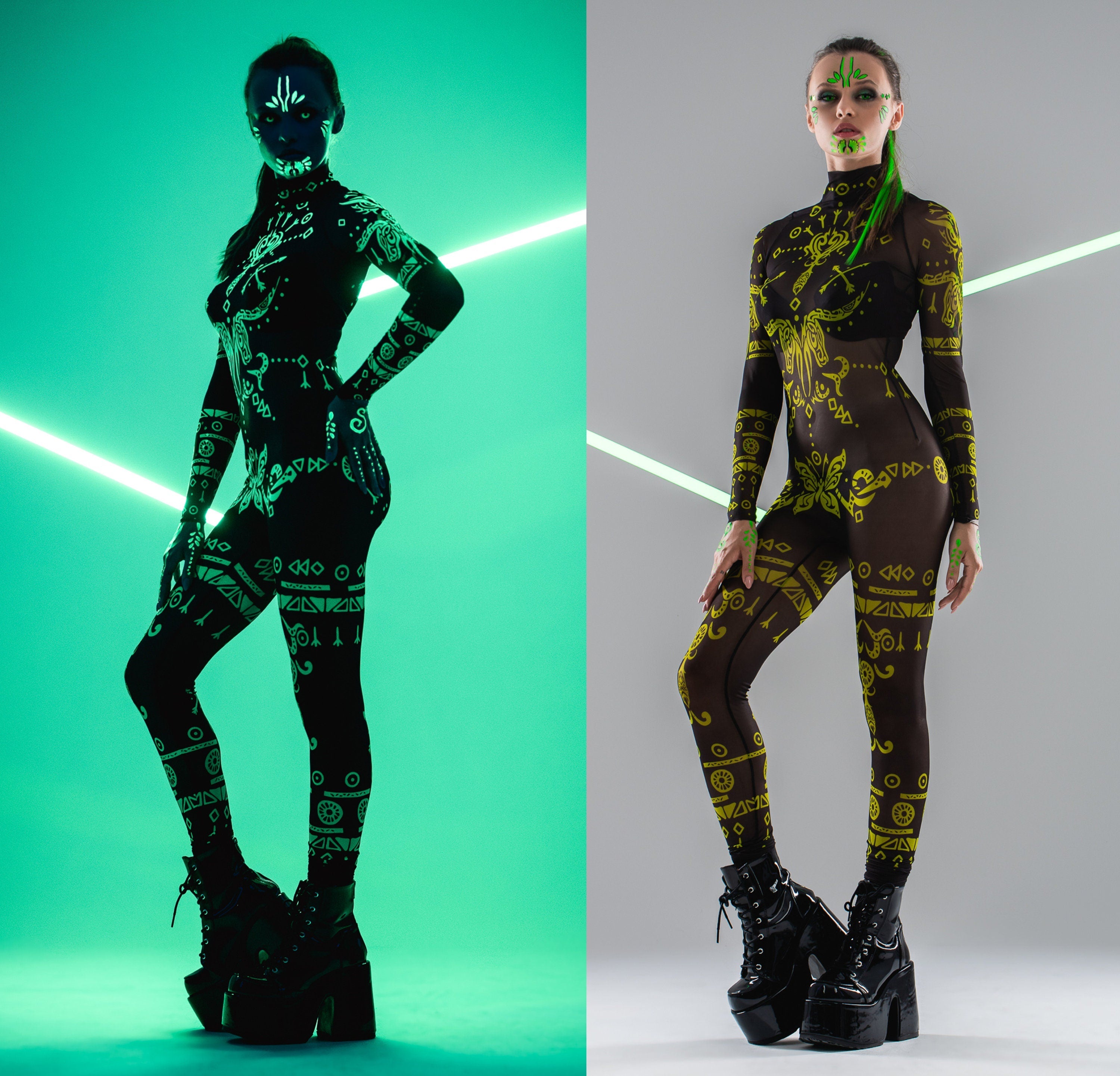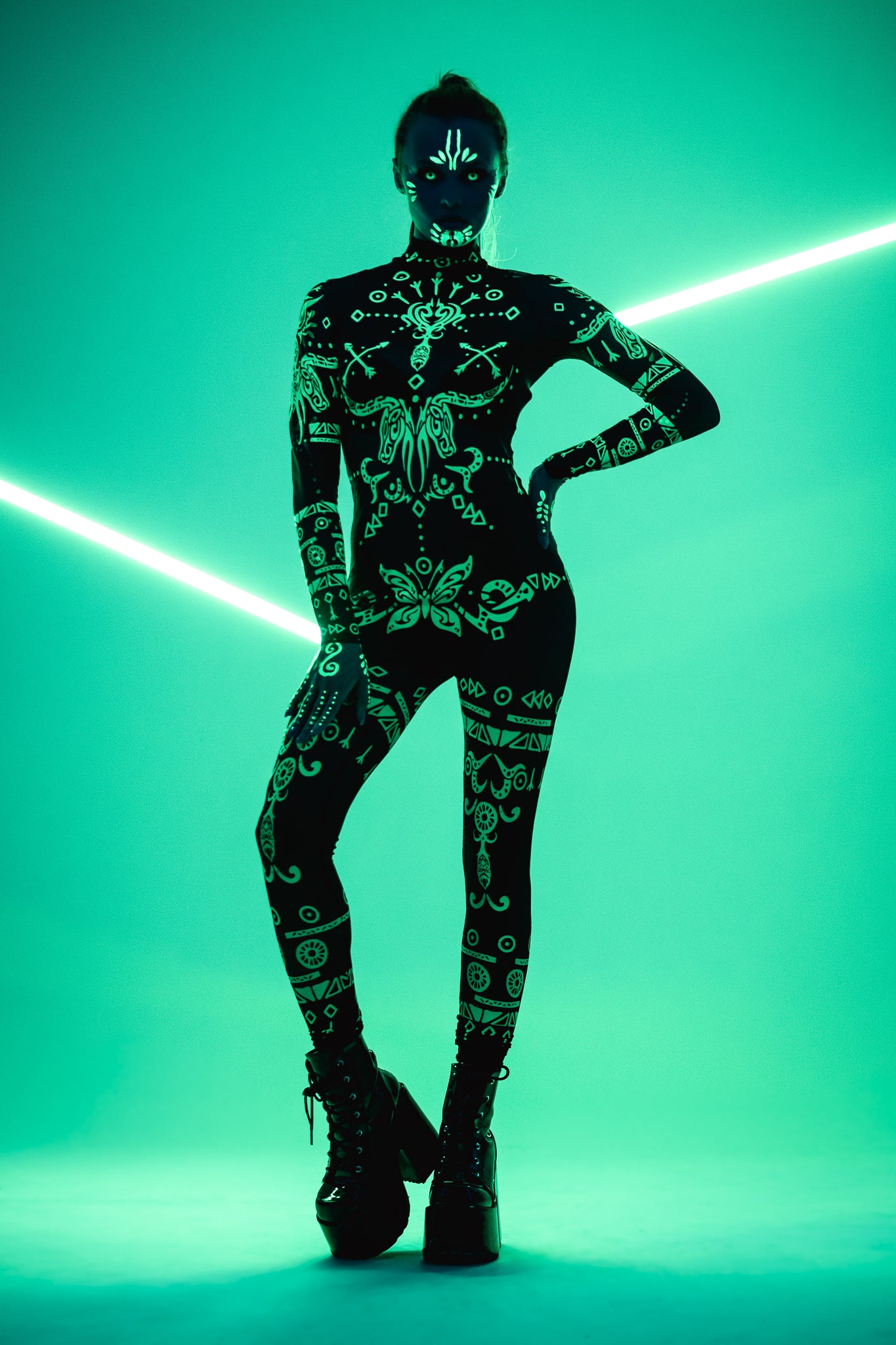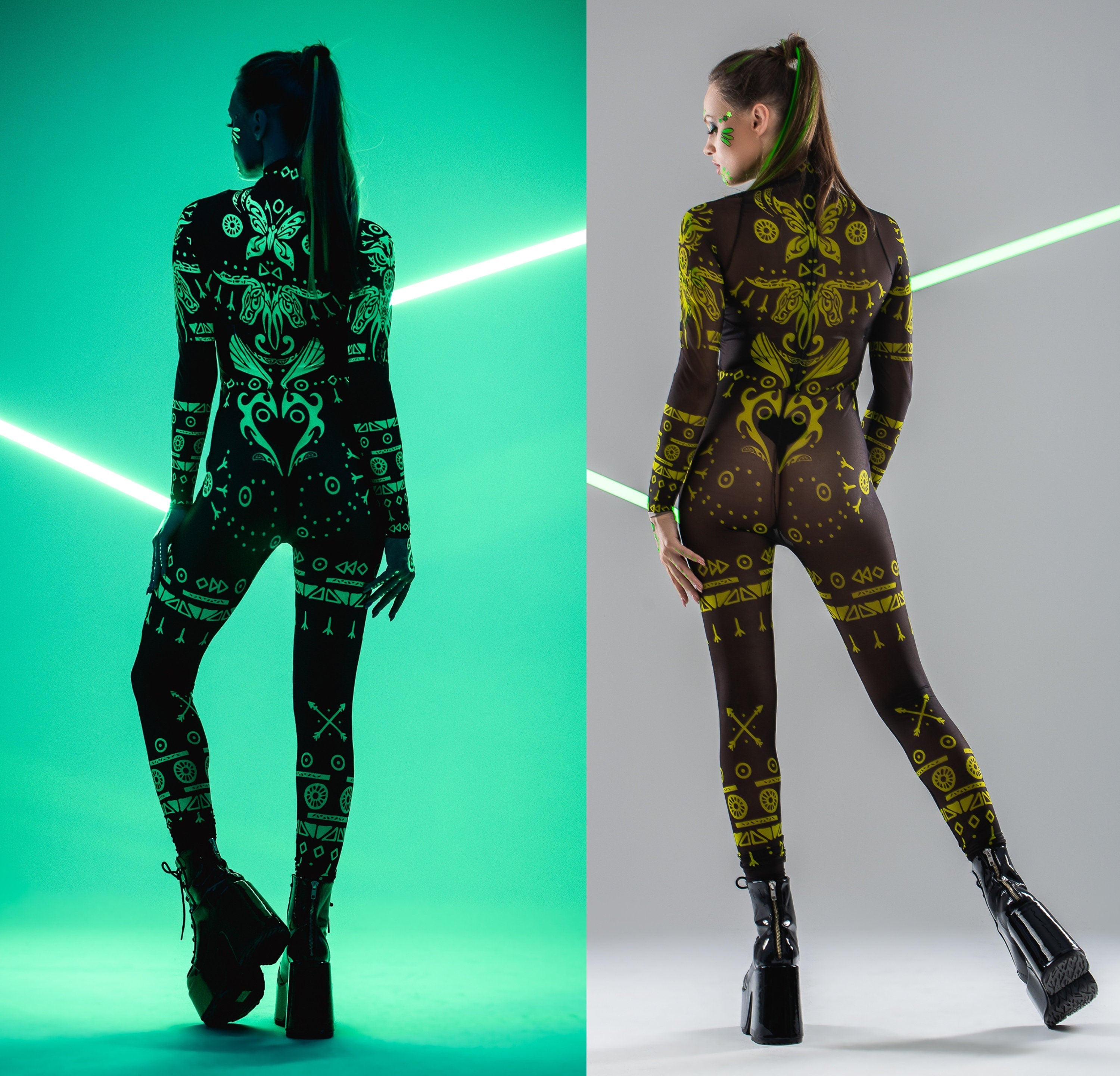 Szukasz stroju, który przyciągnie spojrzenia? Nasz kombinezon z siatki z fluorescencyjnym nadrukiem to doskonały wybór dla miłośników wyrazistych i unikalnych stylizacji "z pazurem"! ✨