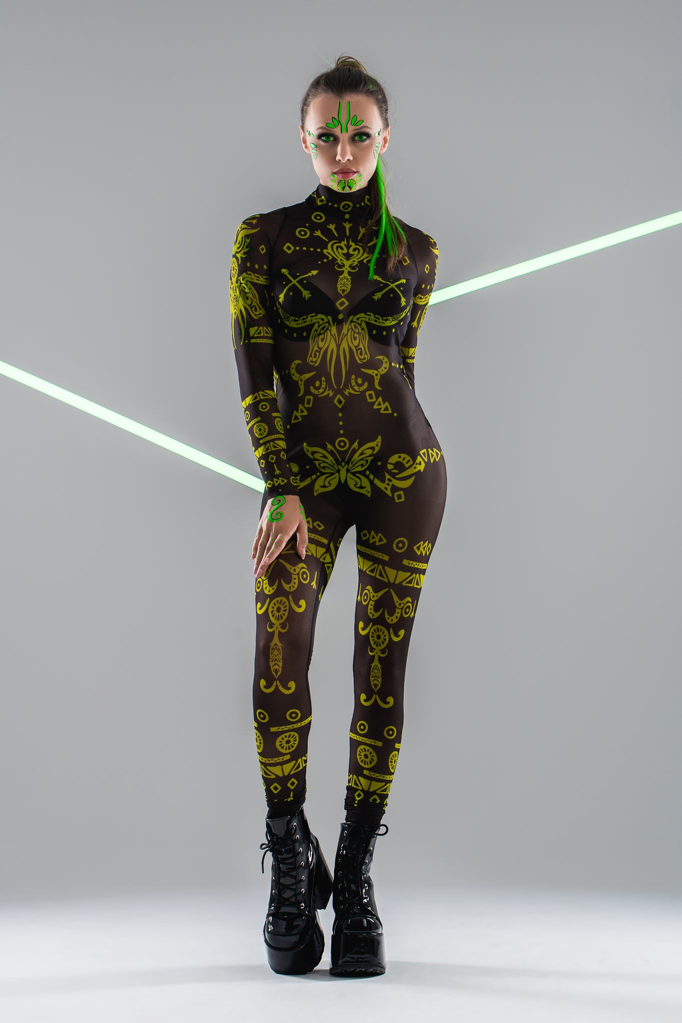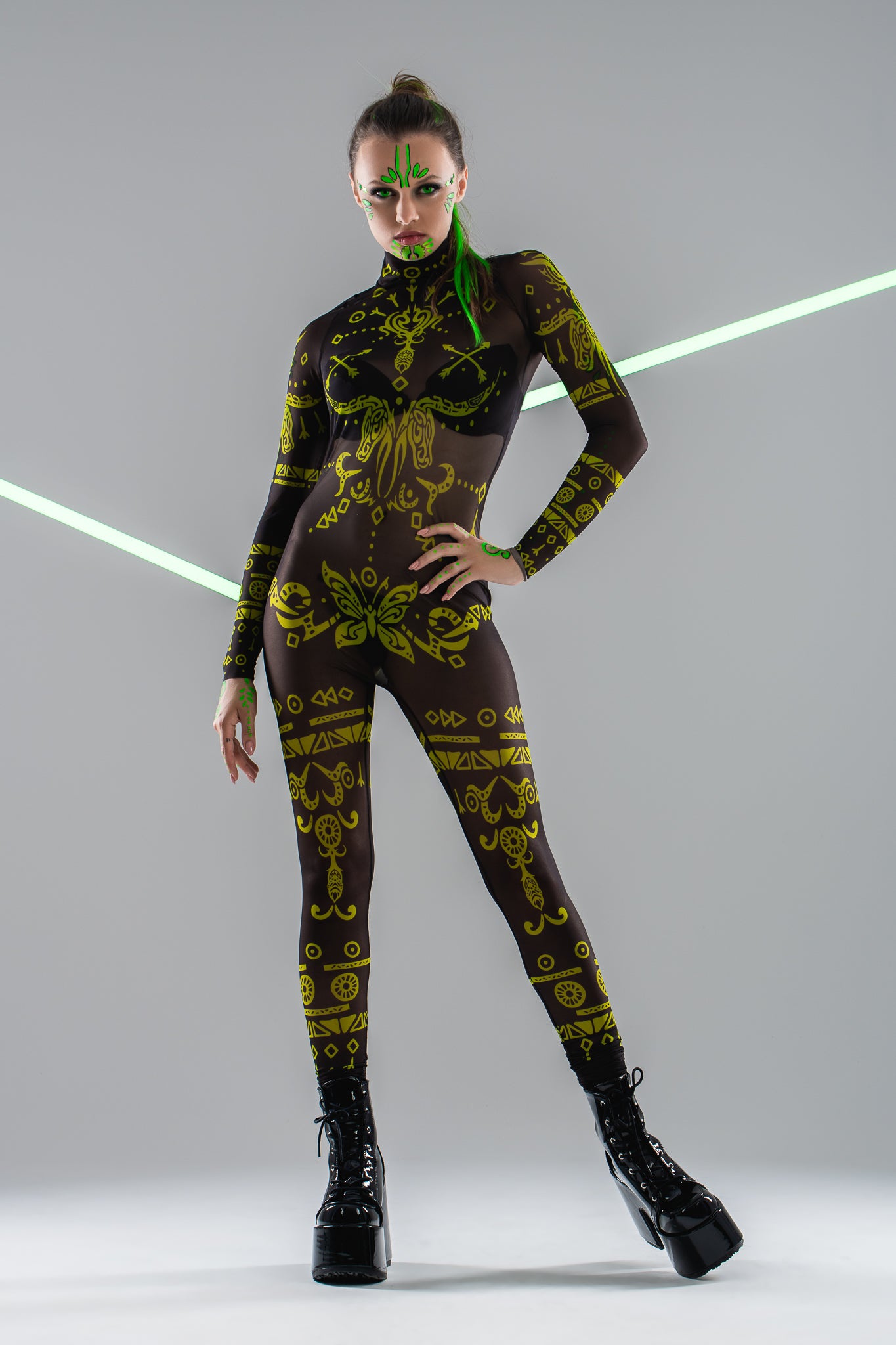 Kombinezon z siatki GREEN TRIBAL - nadruk UV