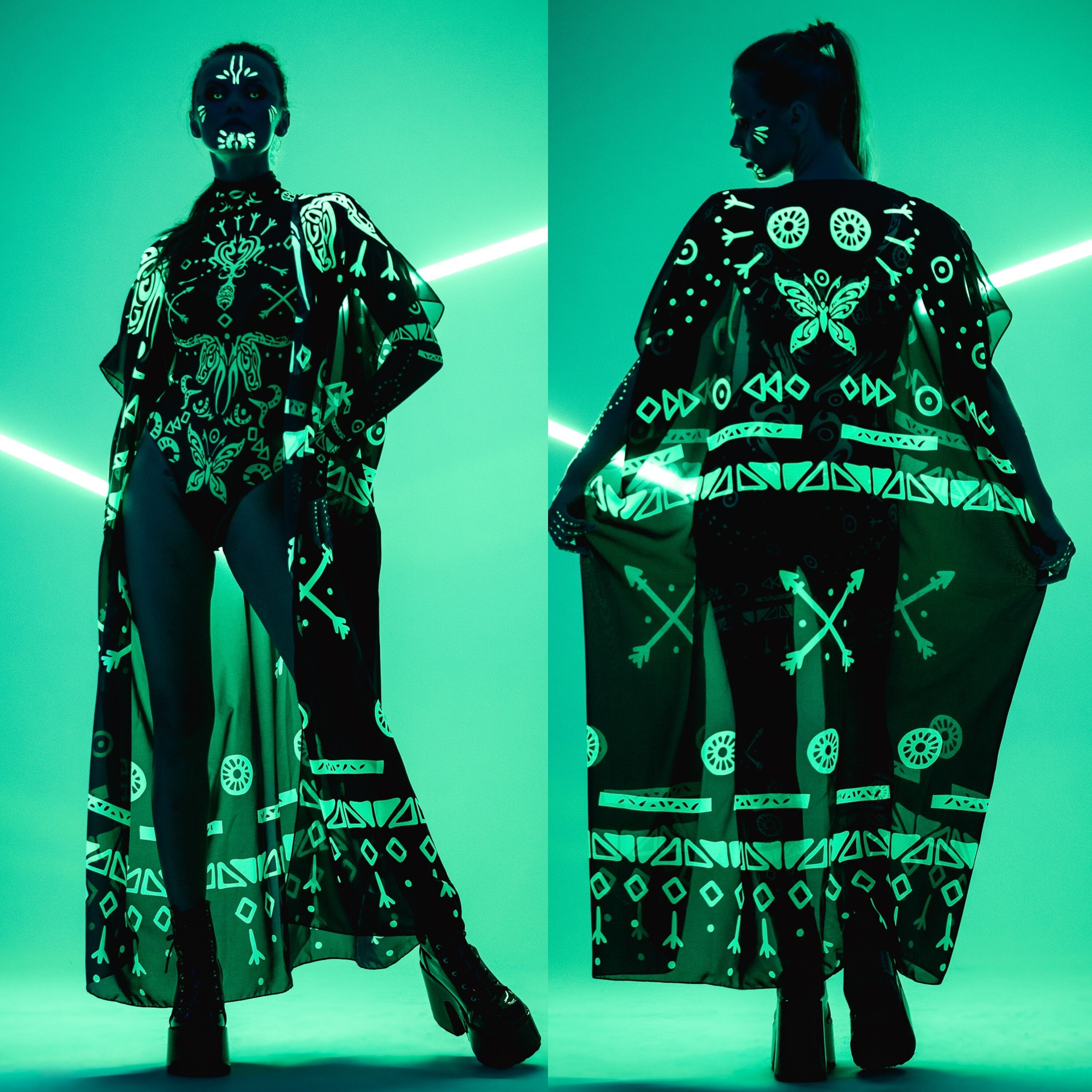 ✔️ Fluorescencyjny nadruk – aktywuje się pod światłem UV, tworząc efektowne neonowe podświetlenie, idealne na festiwale i imprezy! 💡
