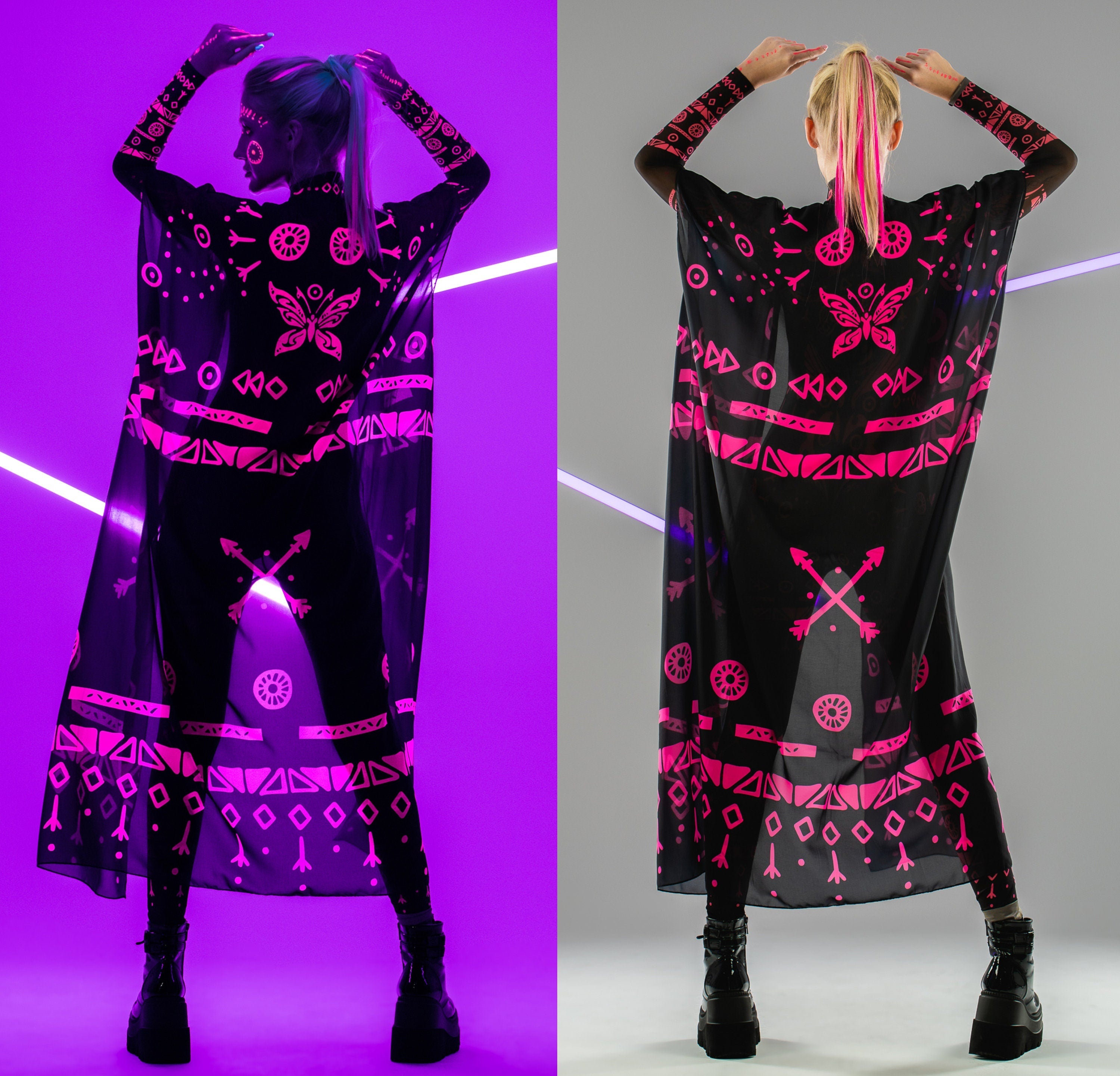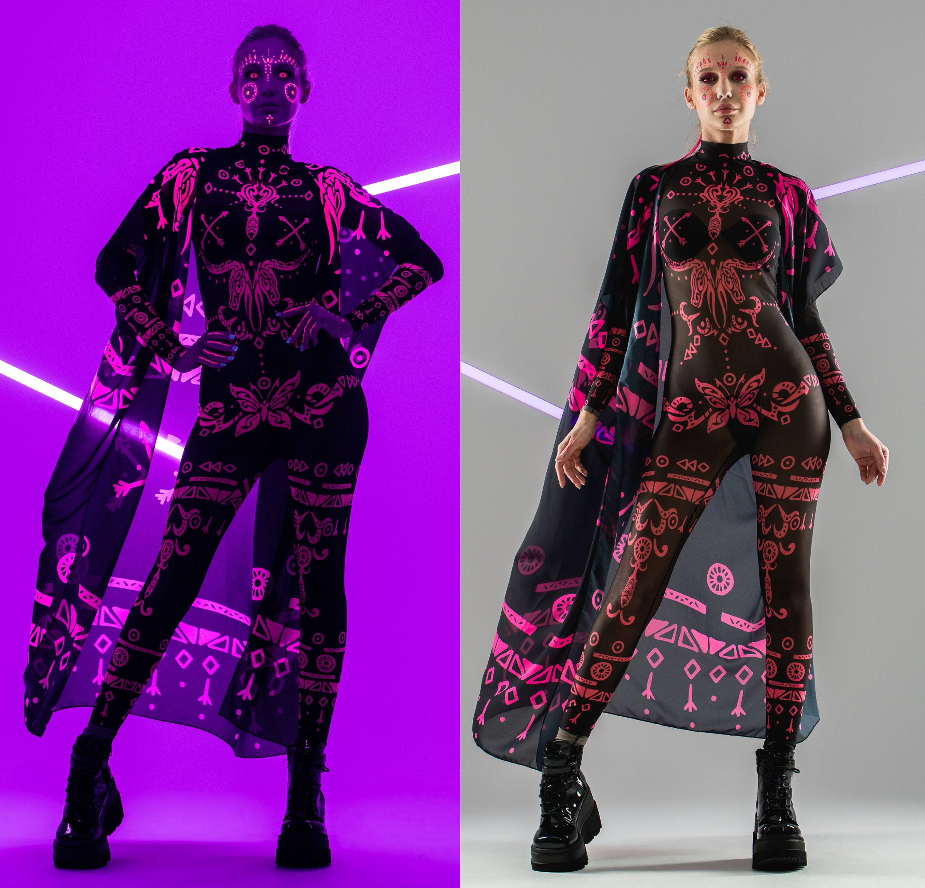 ✔️ Fluorescencyjny nadruk – aktywuje się pod światłem UV, tworząc efektowne neonowe podświetlenie, idealne na festiwale i imprezy! 💡