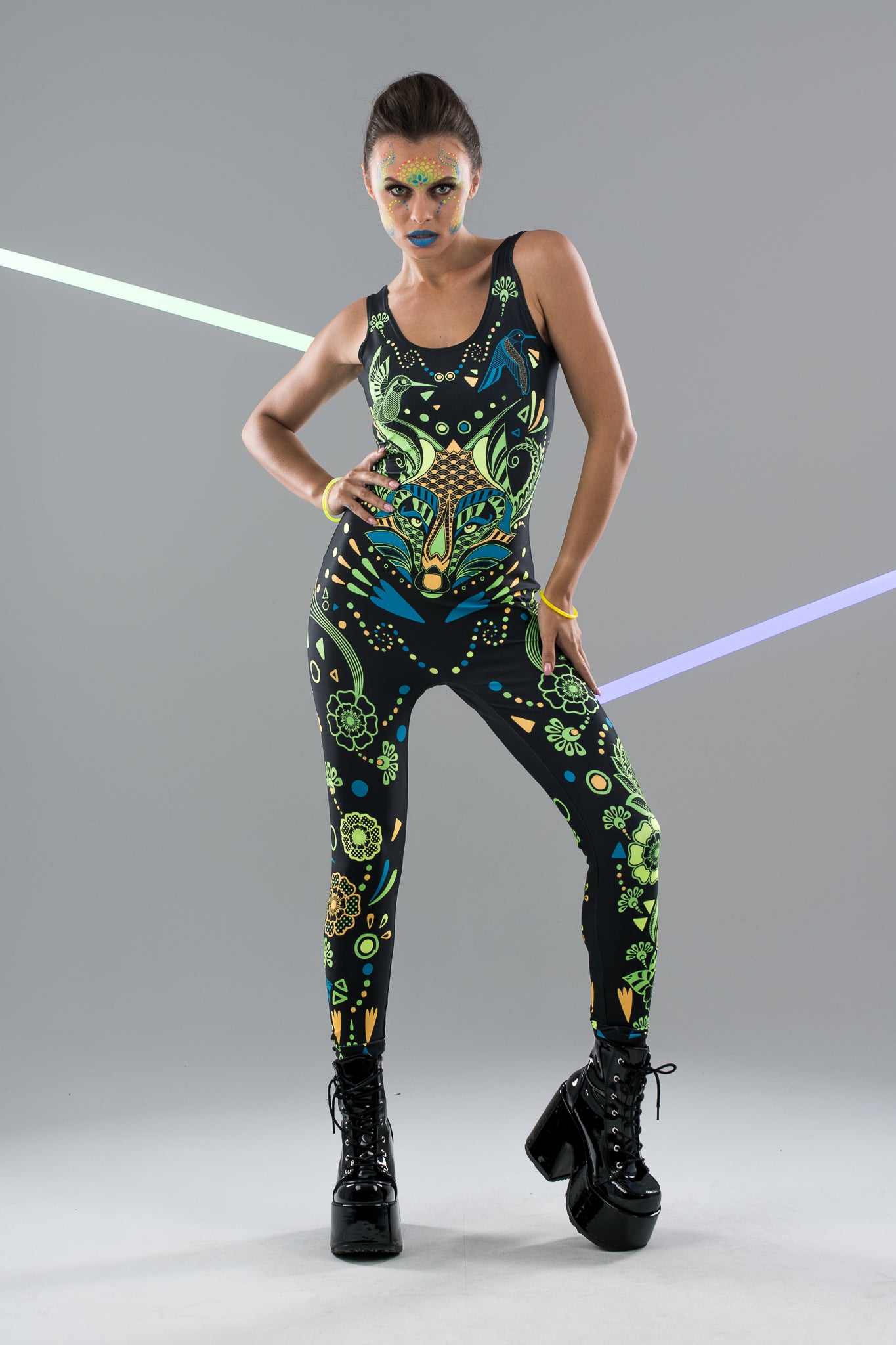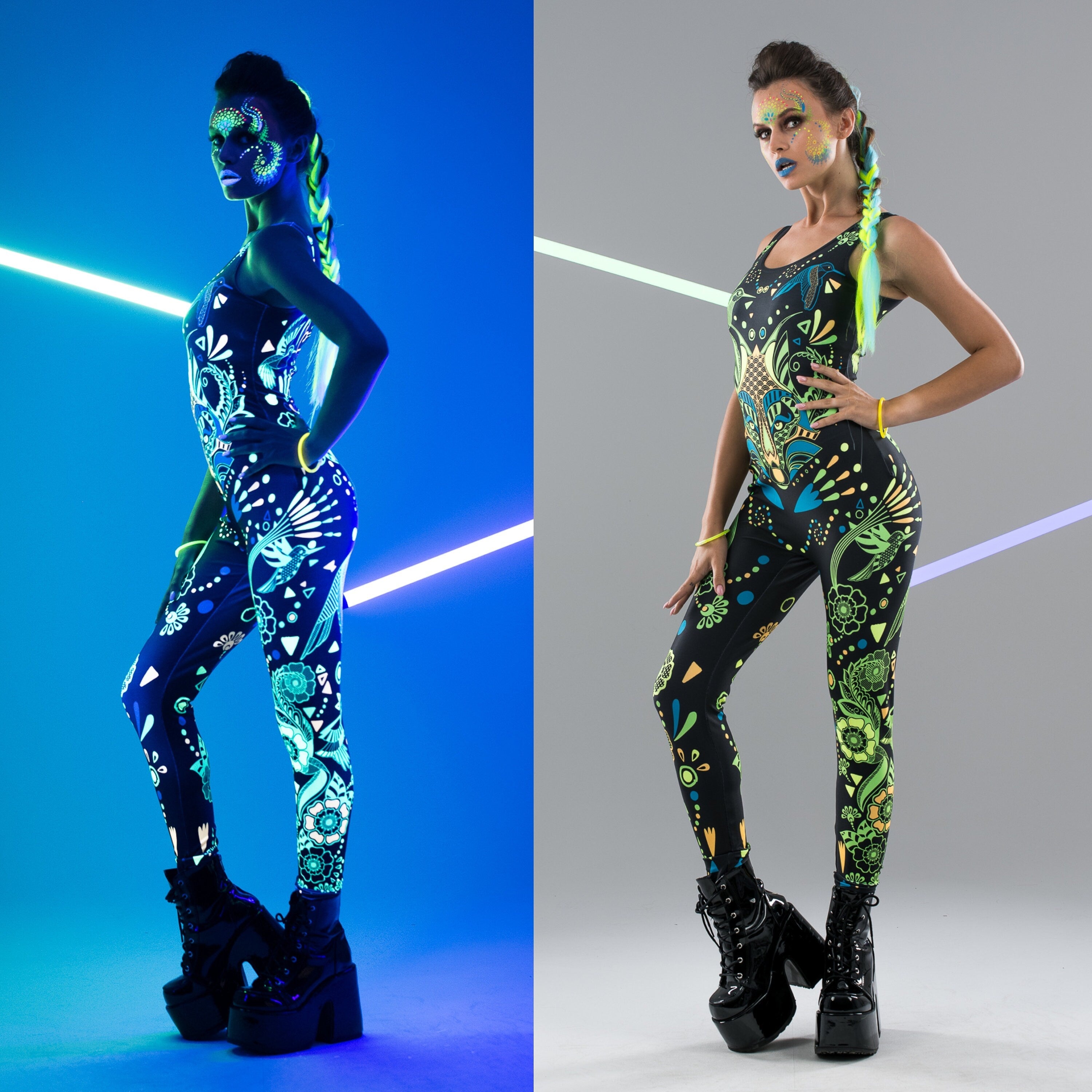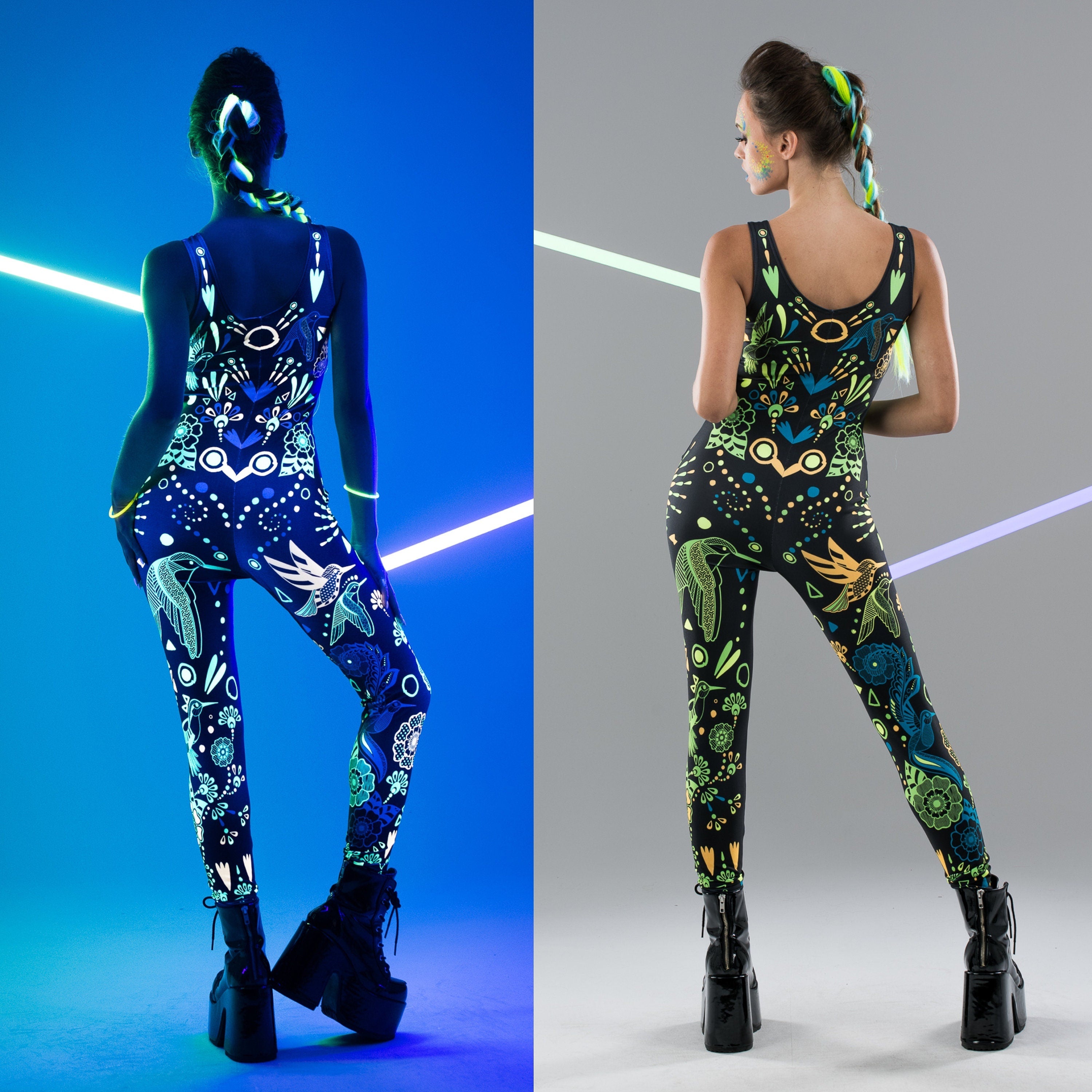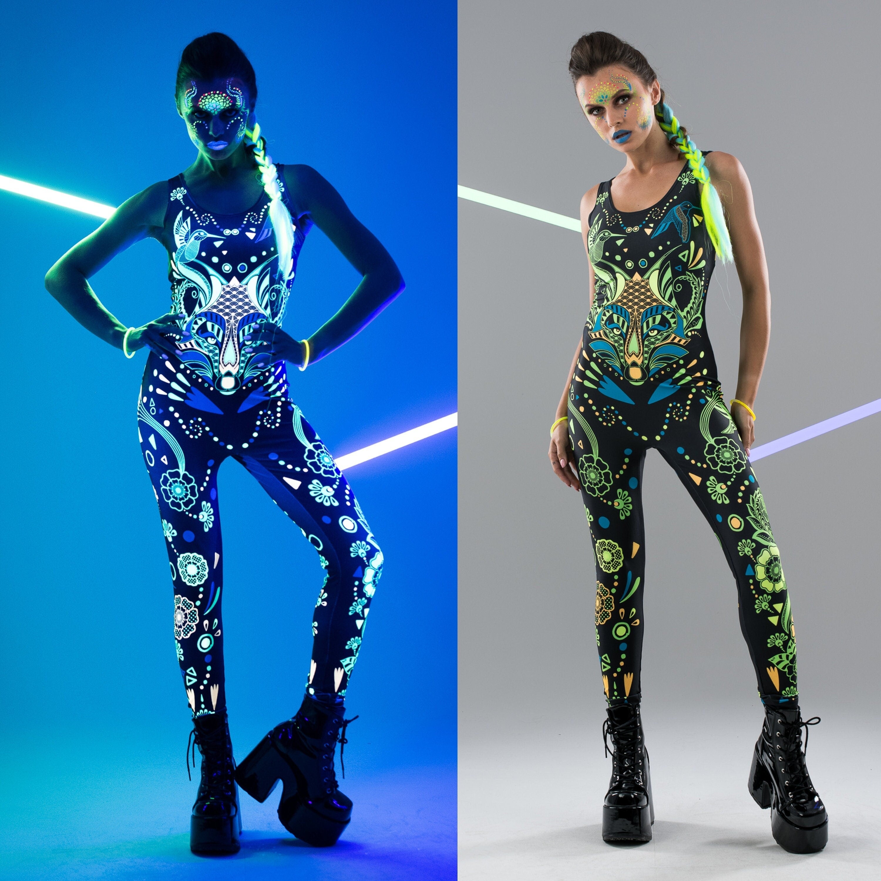 Szukasz oryginalnego i wygodnego stroju na festiwale, imprezy lub inne wyjątkowe okazje? Nasz kombinezon z fluorescencyjnym nadrukiem i głębokim dekoltem to doskonały wybór, który nie tylko wyróżni Cię z tłumu, ale także zapewni komfort przez cały dzień! 🎉✨