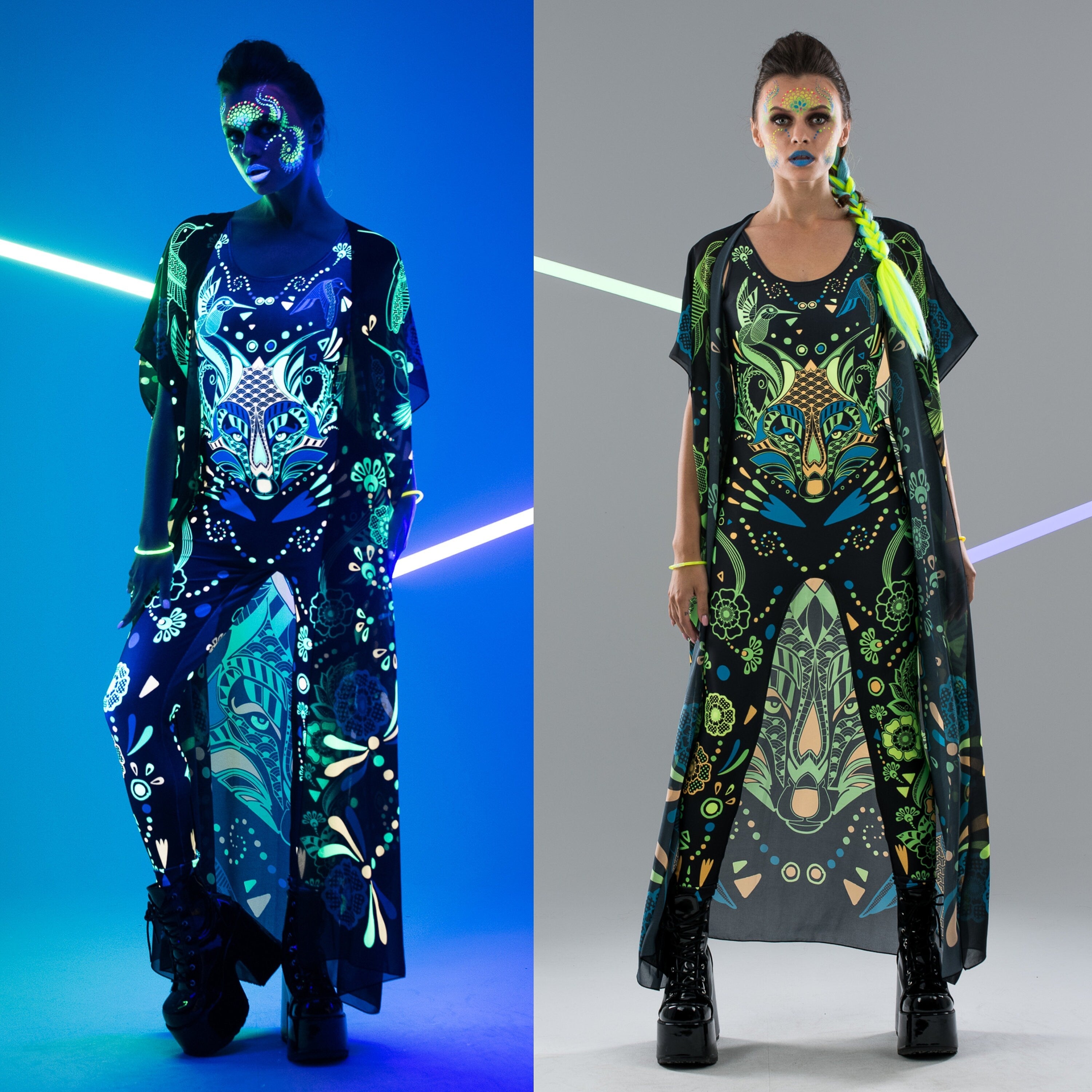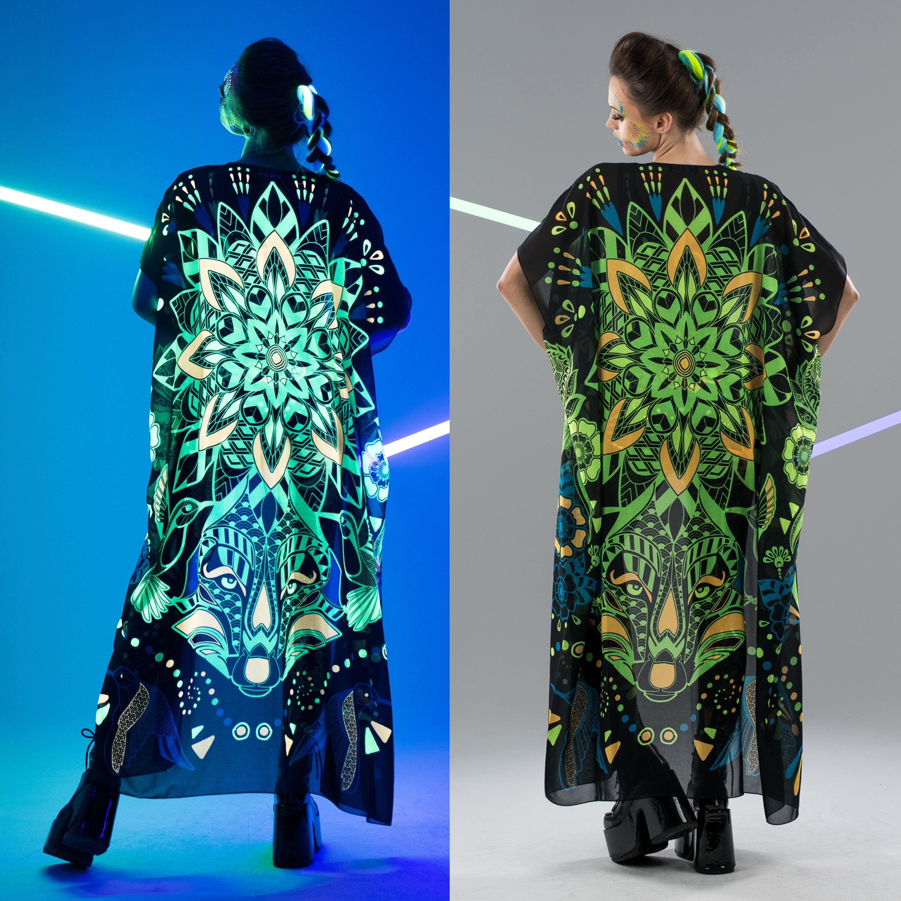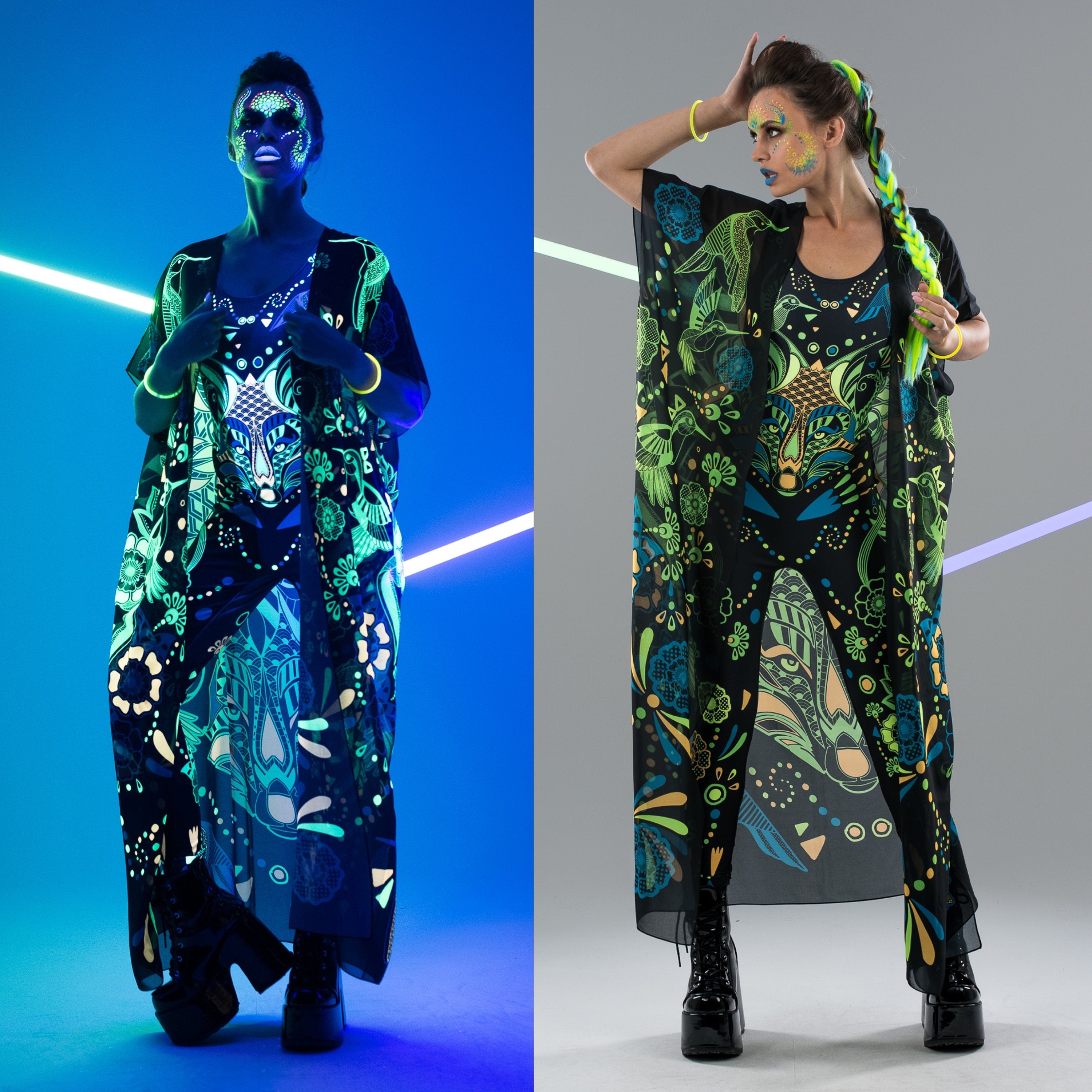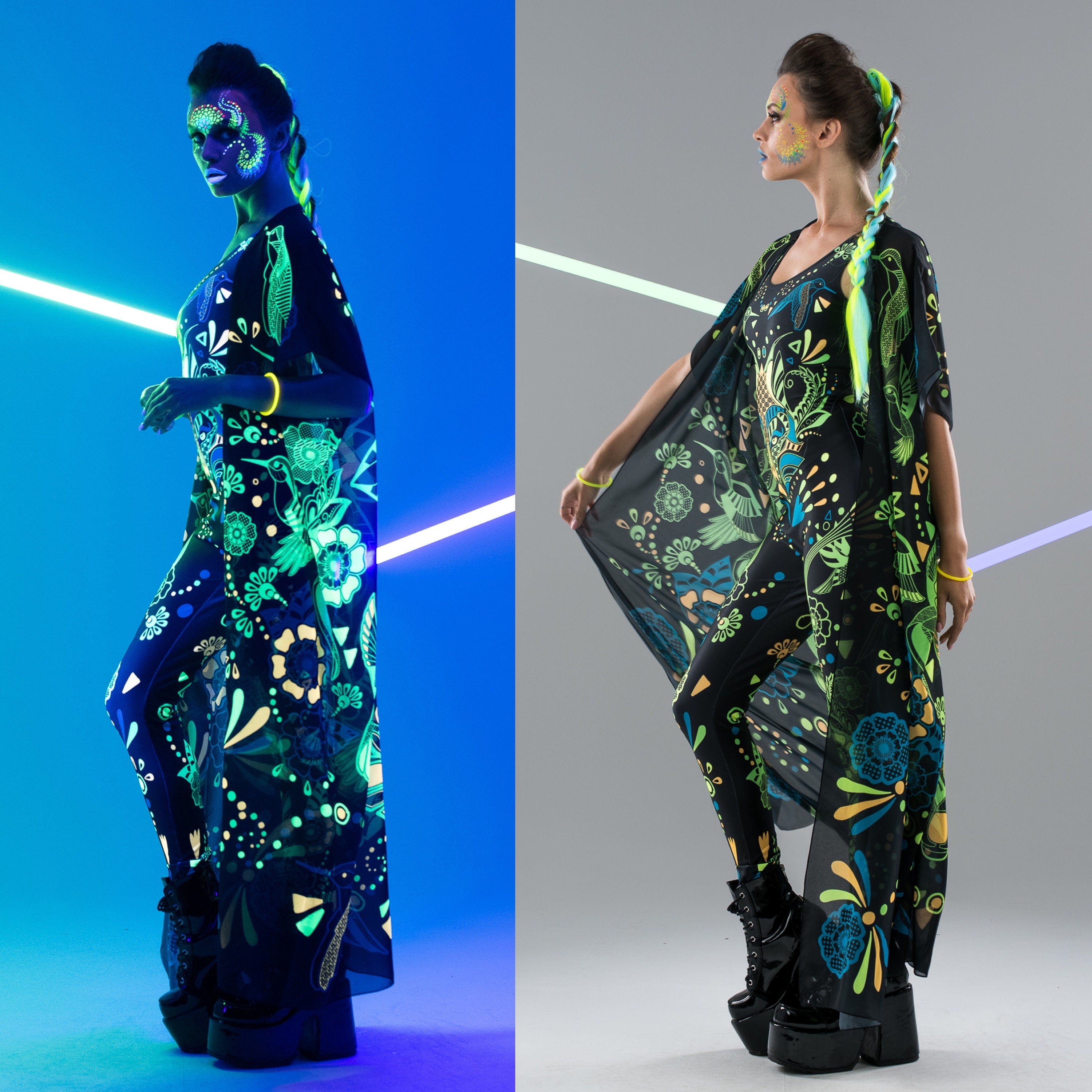 ✔️ Fluorescencyjny nadruk – ożywa pod światłem UV, tworząc spektakularny neonowy efekt, idealny na rave, festiwale i imprezy! 🎇