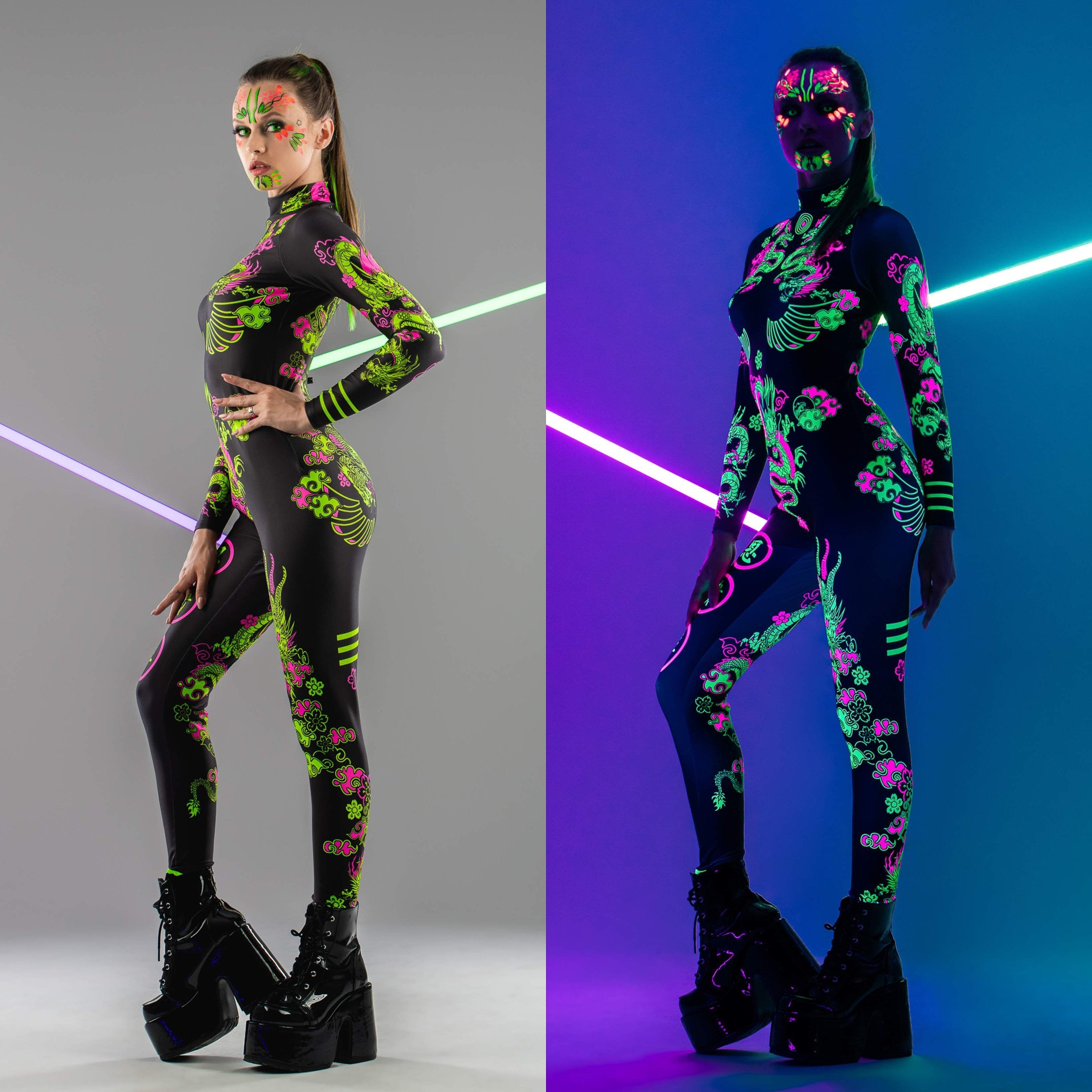 Chcesz być gwiazdą festiwalu? Nasz kombinezon z fluorescencyjnym nadrukiem to doskonały wybór, który nie tylko zapewni Ci wyjątkowy wygląd, ale także wygodę i komfort przez całą imprezę! ✨🔥