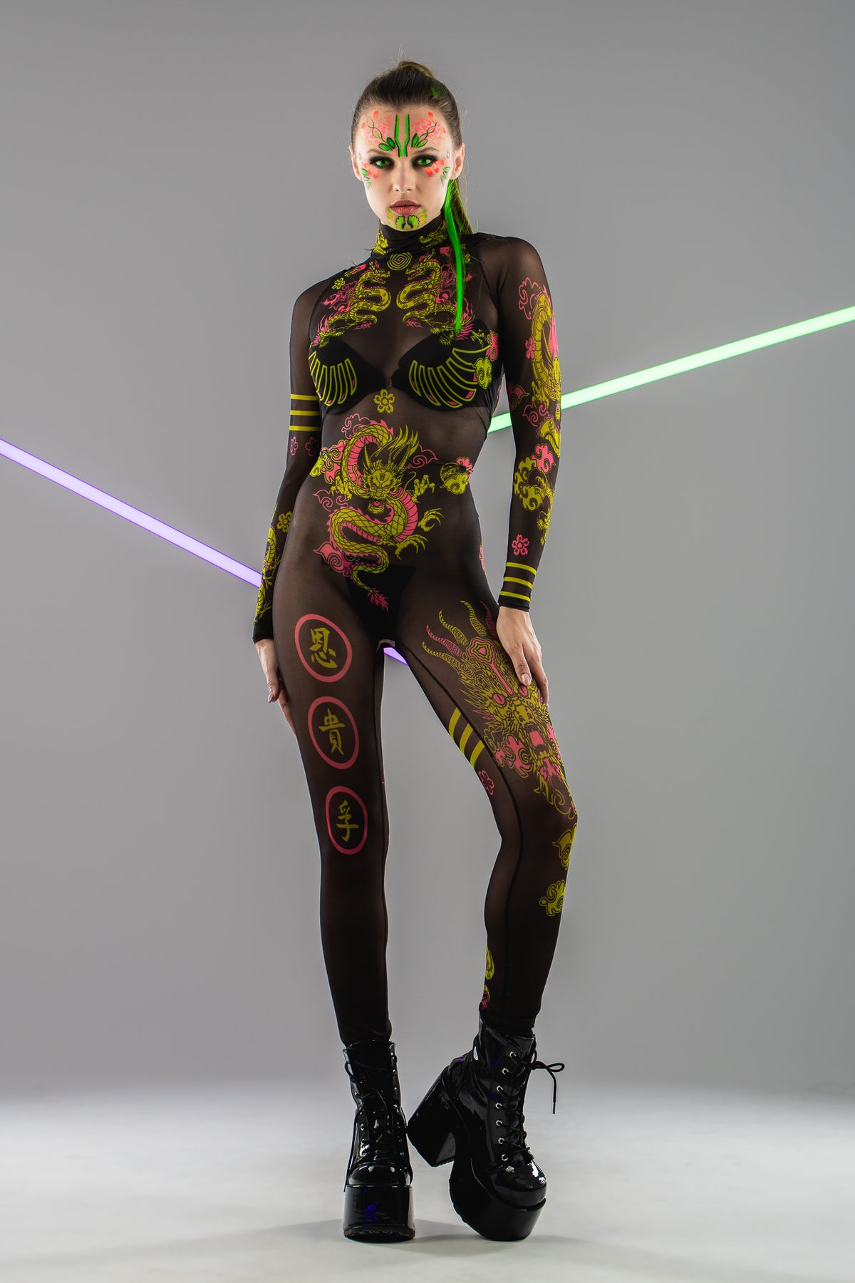 Kombinezon z siatki CHINESE DRAGONS - nadruk UV